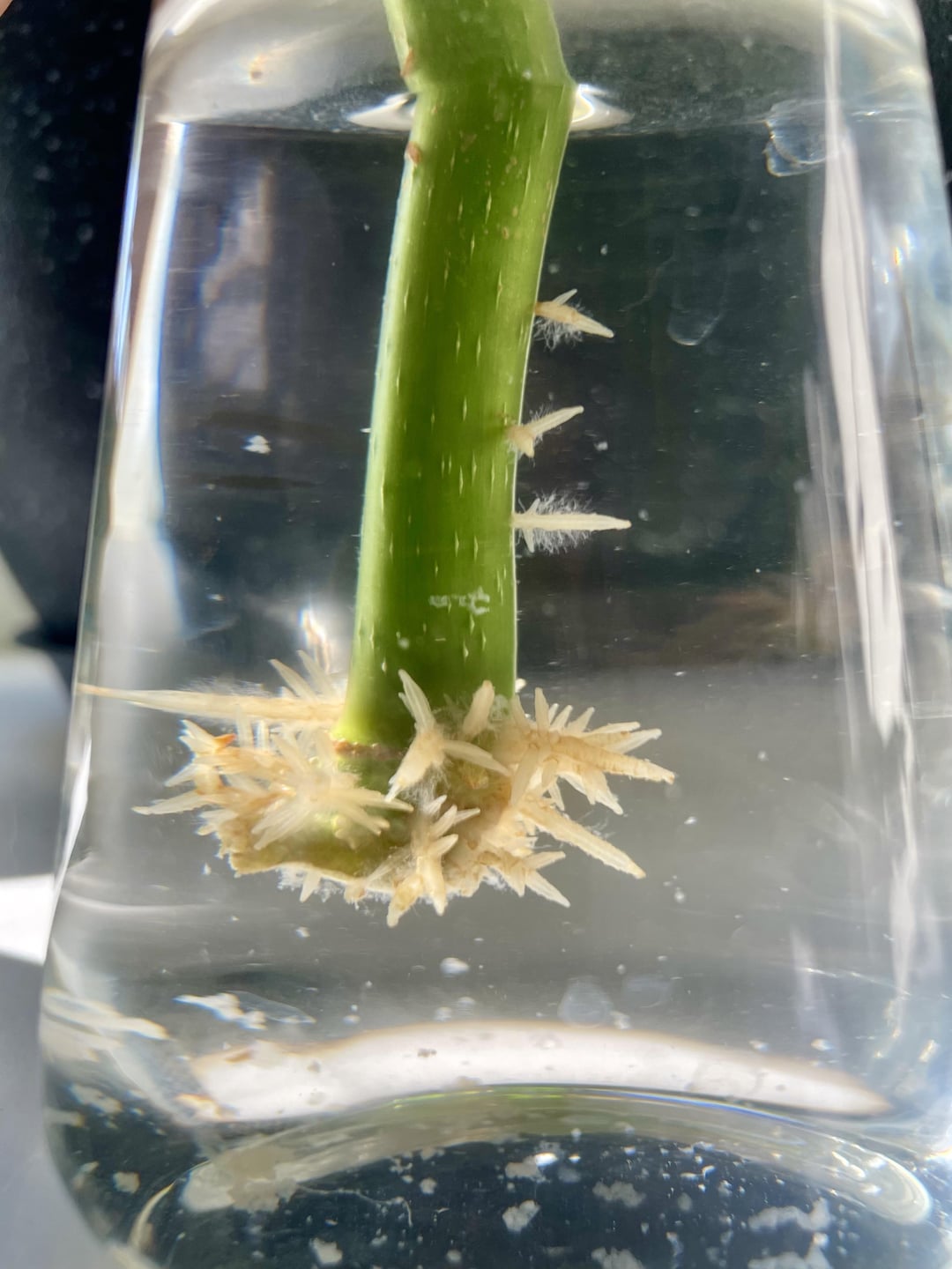 Es ist ungefähr 3,5 Wochen her und dies sind die Wurzeln, die ich bisher bekommen habe. Ich denke, der längste ist 1/2 Zoll lang. Dies wird auch mein erstes Mal sein, dass ein Wasser in Pon gegen Boden geschnitten wird. Ein Rat zu Pon und/oder Semi-Hydro wird also sehr geschätzt!