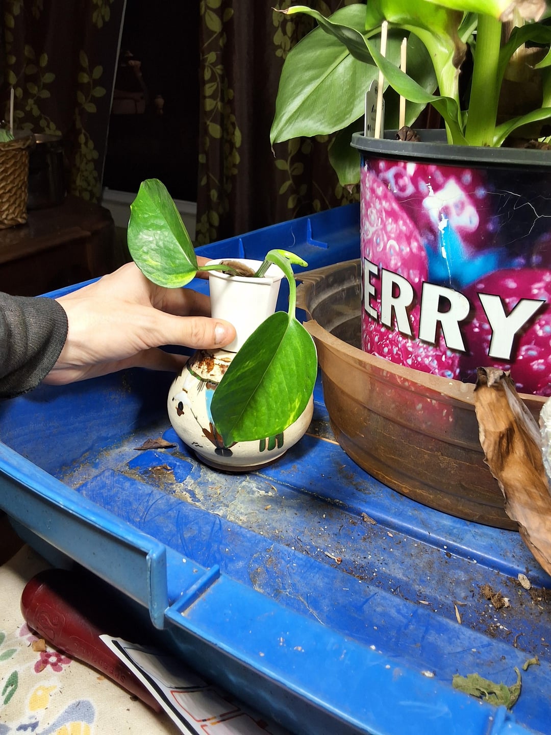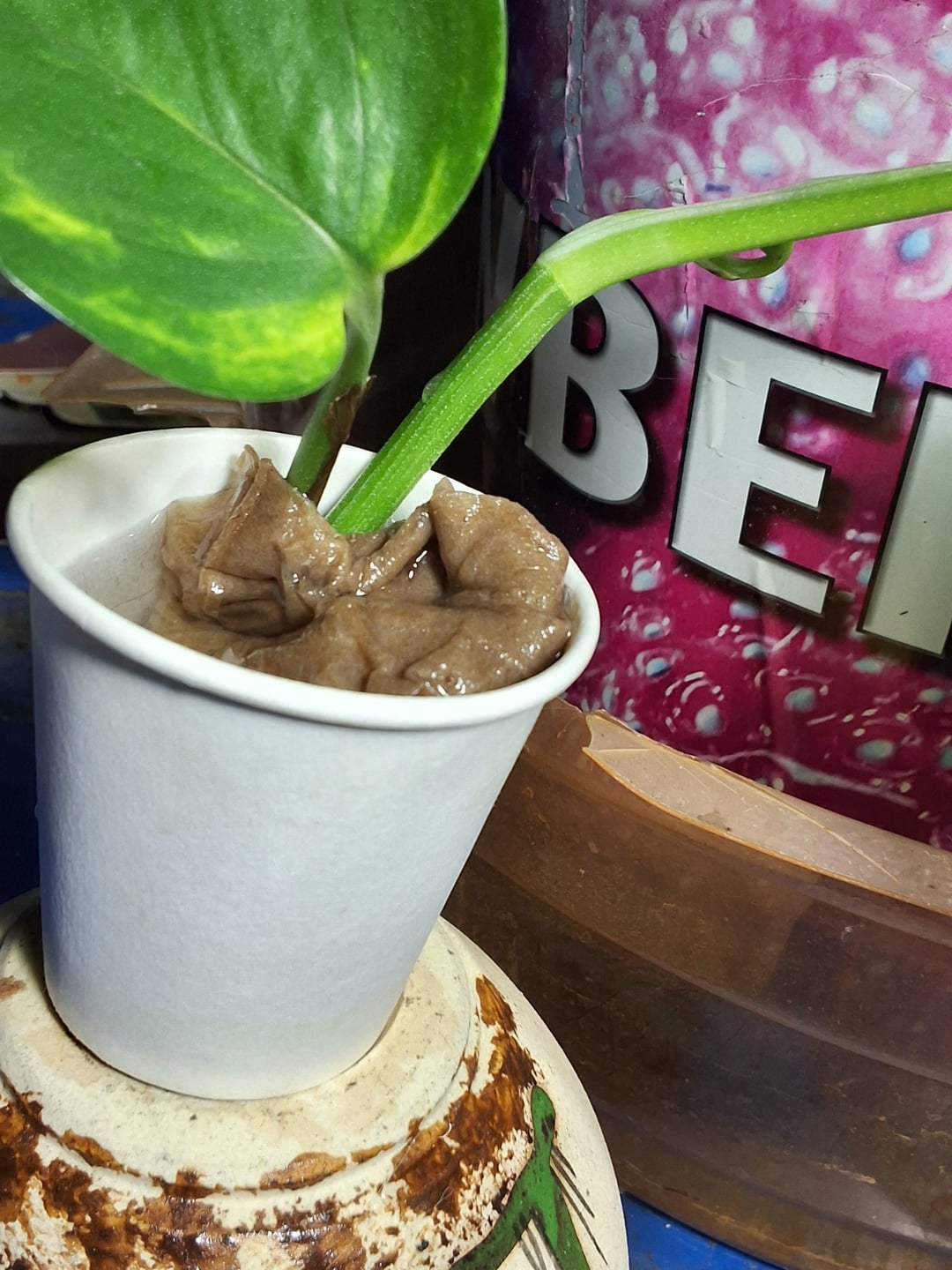 Hallo allerseits 😊 Ich war heute mit meiner Schwester in einem Café. Ich habe bemerkt, dass sie eine sehr minimal variegierte Pothos hatten !! Ich durfte einen Schnitt nehmen, nachdem ich gebeten hatte, dafür zu bezahlen !! Ich habe das Etikett mit der Pflanze dreifach überprüft, und das Tag zeigte, dass es tatsächlich weiße, vargierte sein soll !! Das arme Ding war in sehr geringem Licht (ich hoffe jetzt, dass ich es unter meinem Wachstum von Licht habe. Ich habe vergessen, aufzuschreiben, was das Tag sagte, gibt es sowieso, um zu sagen, welche Art von Pothos er ist oder muss ich warten, bis es eine Variegation zurückkommt? Alle Vorschläge werden sehr geschätzt 😊