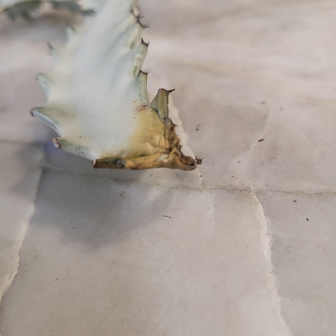 Mein Candelabra Cactus (ich denke ??) hatte diesen Winter schwer … Ich bin mir nicht sicher, ob ich es in einem kalten Klima überwaterte oder zu nahe am Fenster gehalten habe oder was, aber es brach im Grunde genommen. Also habe ich es genommen und geschnitten, damit es Callus und ich wiederholen können. Sieht das nach Calluse oder Fäulnis aus? Ich liebe dieses Ding einfach und möchte es retten