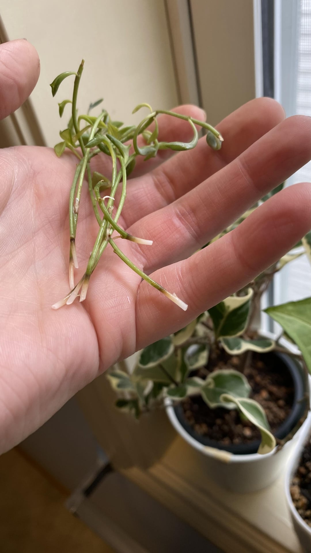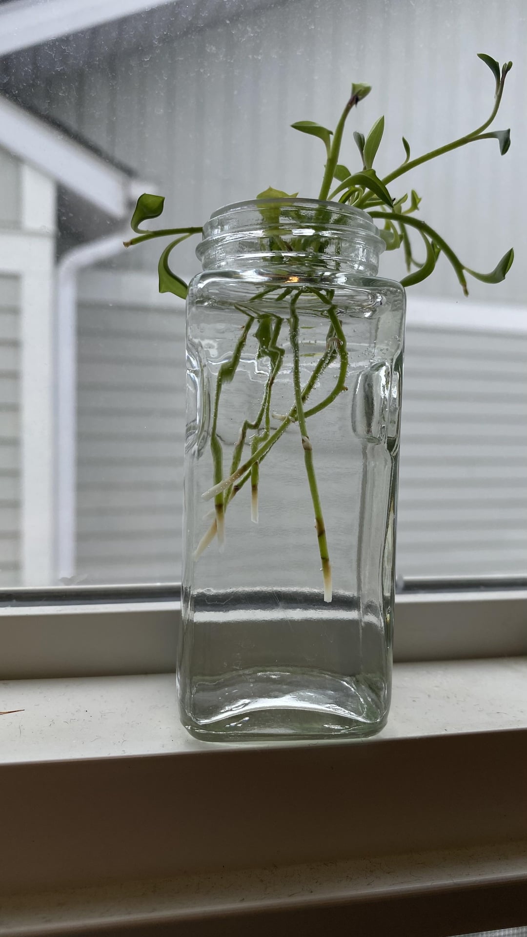 Ich weiß also nicht, ob es das Wasserstoffperoxid oder Bleichmittel ist. Ich habe eine Spinnenpflanze, die direkt neben der Delfinekette in einem Schnapsglas steckt und das sieht gut aus.
