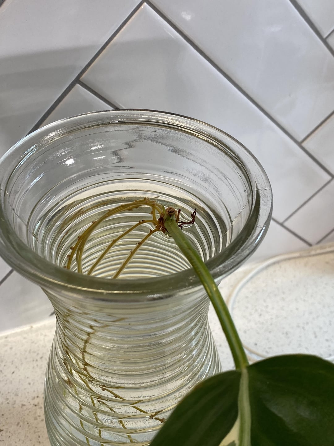 I am concerned about the lack of any new growth. This is a philodendron so I’d hesitate to say there are no growth points, maybe a lighting issue? I find that even in little to no light while water rooting, these will try pushing out a new tiny leaf every now and then still. I think I might see new growth on the green little bump growing up near the roots.