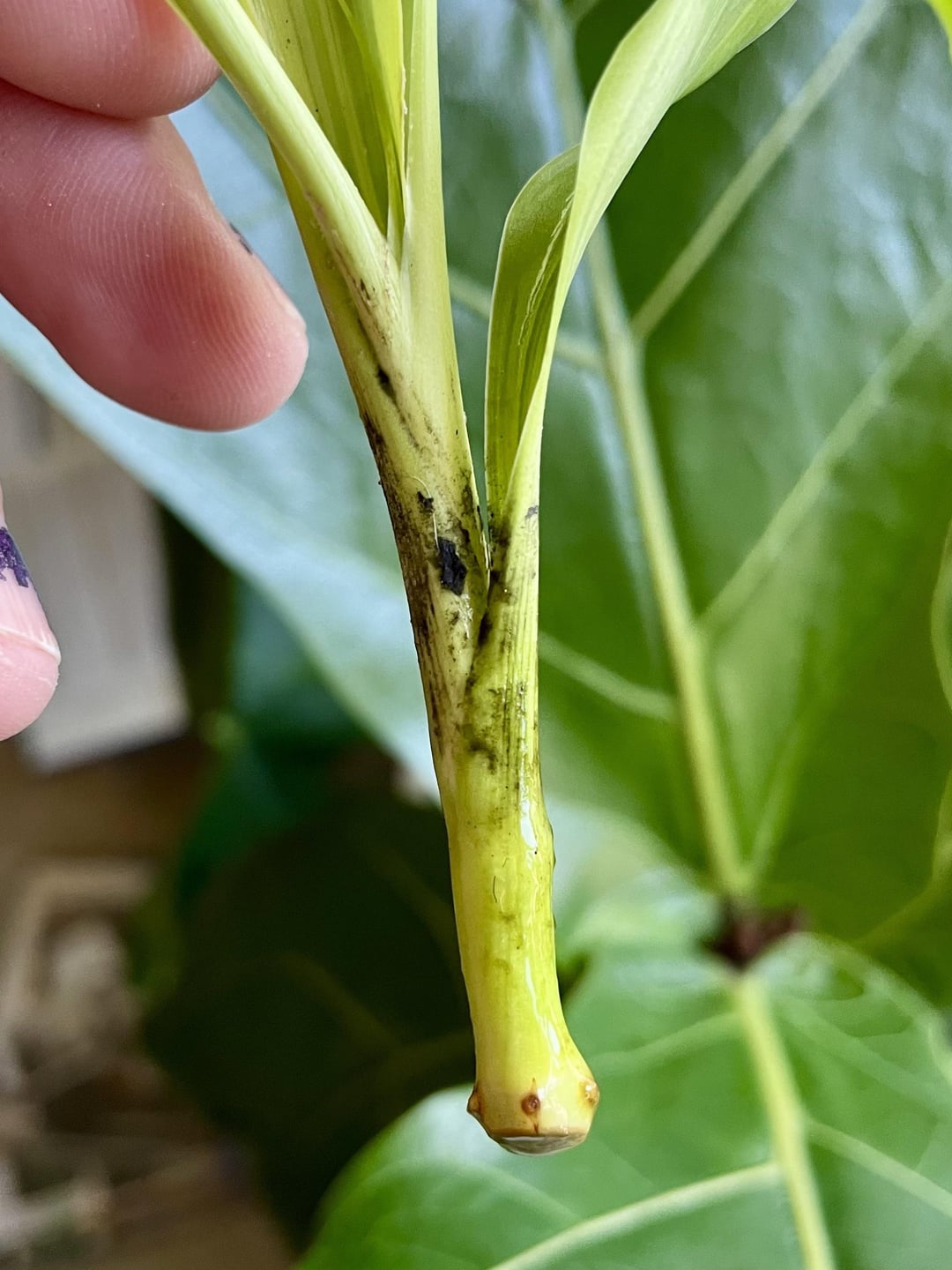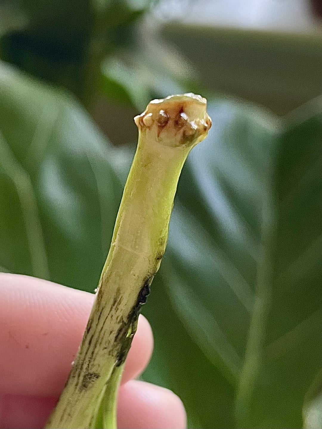 Es ist seit Oktober gewöhnt und hat schließlich einige Anzeichen von Wurzeln auf dem Weg, aber es bekommt wiederholt dieses schwarze schleimige Zeug darauf, dass ich in Wasser abkratzen kann. Scheint die Requisiten nicht zu verletzen, kann aber nicht gut sein