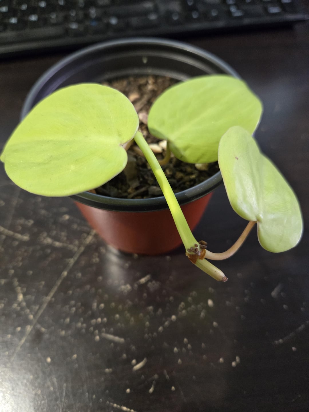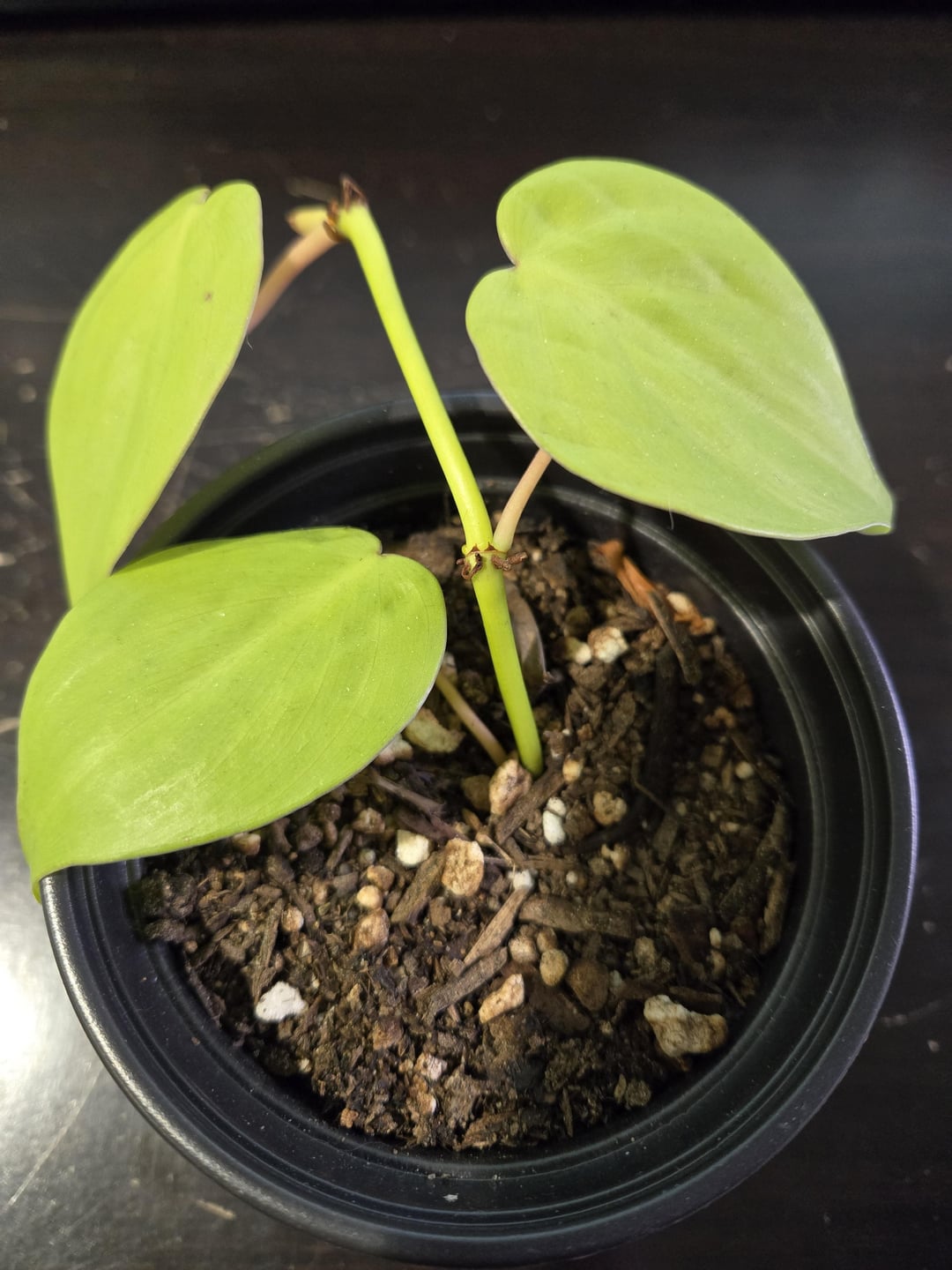 Ich habe diesen Zitronen -Lime -Philodendron -Schnitt seit Oktober und es hat seitdem wirklich nichts mehr getan. Es ist im kleinen Kindergarten verwurzelt, bis eine Wurzelspitze den Boden herausspuckt, aber keine Änderungen über dem Boden. Das obere Ende des Weinstocks erscheint aus dem ersten Beschneidungsprozess schwielig, daher bezweifle ich, dass es von dort aus wieder wachsen wird. Der einzige verfügbare Knoten für die Wurzeln war der gleiche Knoten, aus dem das unterste Blatt herauskam, fühlt sich zu diesem Zeitpunkt jedoch fest im Topf.