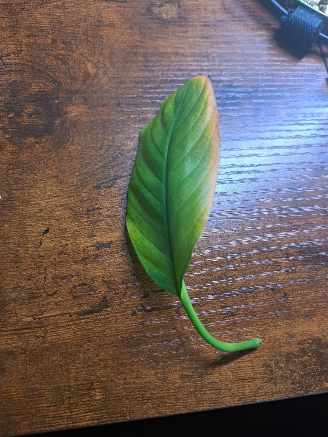 Ich habe mich seit fast einem Jahr um diesen Friedenslily gekümmert. Als ich es bekam, wollte ich der Vase ein Moss -Top hinzufügen, um zu sehen, ob es funktionieren würde (es hat bisher nicht genau funktioniert). Ich habe das Blatt beim Trimmen des Moos nicht geschnitten, versuchte, es zu rehabilitieren, indem ich ihm einen Aufenthalt machte und es hilft, es zu heilen, was es hauptsächlich tat. Der Wundlieb und der Zweig wuchs bis vor kurzem immer wieder, dass das Teil, an dem dieses Blatt festgehalten hatte, gelb wurde, während sich das Blatt hier nicht mehr umdrehte. Heute habe ich beschlossen, das sterbende Stück einfach abzuschneiden. Ist es möglich, dieses Blatt in eine neue Pflanze zu stützen, oder ist es für getan?