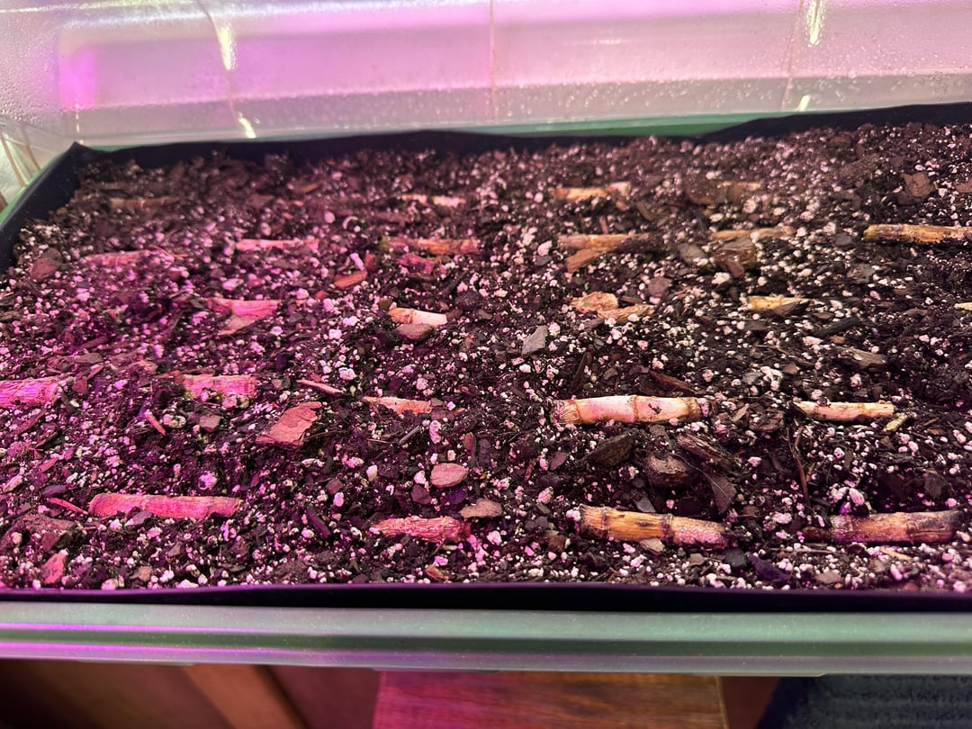 Ich bin also ziemlich neu in der Verbreitung und habe letzten Monat einige hawaiianische Ti -Stämme gewonnen. Ich habe einige Nachforschungen angestellt und sie dann in 1-2 Zoll Stücke geschnitten und in meine Bodenmischung gelegt und eine klare Kuppel über sie gelegt und ein wachsenes Licht darüber hängt. Es befindet sich in einem Regal in einem nach Osten ausgerichteten Fenster. Ich habe das am 25. Februar vor ein paar Tagen begonnen. Ich bemerkte, dass sich eine weiße Form entwickelte, also habe ich die Kuppel für ein paar Tage entfernt. Das Problem, das ich habe, ist, dass alle Teile so aussehen, als würden sie austrocknen, obwohl ich den Boden feucht halte (nicht wässrig). Kann mir jemand sagen, was ich hier falsch mache? Ich habe das Gefühl, dass diese alle verloren sind. 🥲
