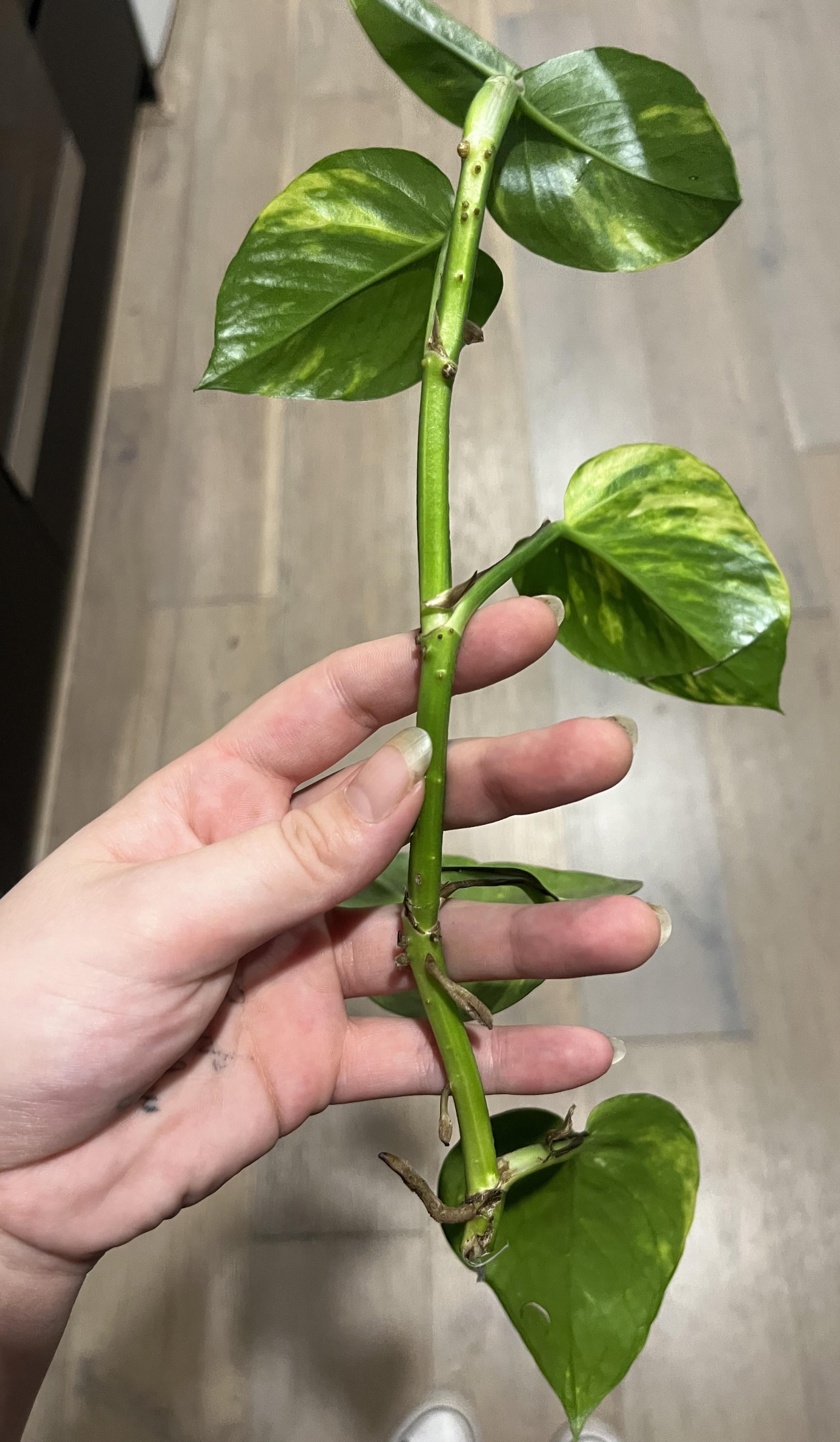 Bin ich besser aus der Schicht oder der Luftwurzeln der kleineren Wurzeln, sobald die Anlage festgelegt ist? Ich bin mir ziemlich sicher, dass es sich um eine Art bunte Pothos handelt, und ich weiß, dass es sich um produktive Wasserversuche handelt … Gedanken?