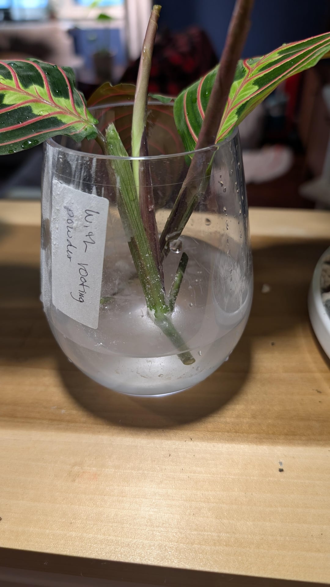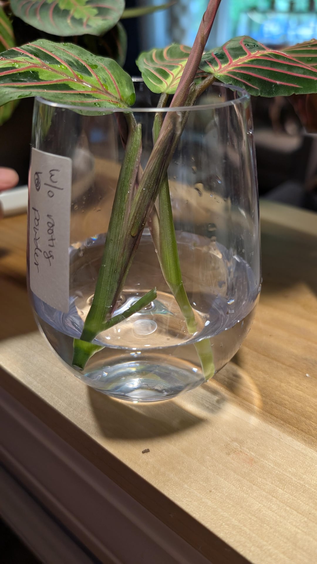 Tag 1: Semi -wissenschaftliches Experiment Propagierende Gebetspflanze. Wurzelpulver gegen kein Wurzelpulver. Stecklinge aus derselben Pflanze, ausgewählten Stecklingen, die der Verwendung am ähnlichsten waren. Gleiche Art von Behälter, gleiche Beleuchtung, gleiche Art und Wassermenge. Wir werden sehen, ob das Pulver ihnen schneller hilft oder nicht! Ich werde dies auch mit Wurzeln im Boden mit einigen zusätzlichen Requisiten versuchen.