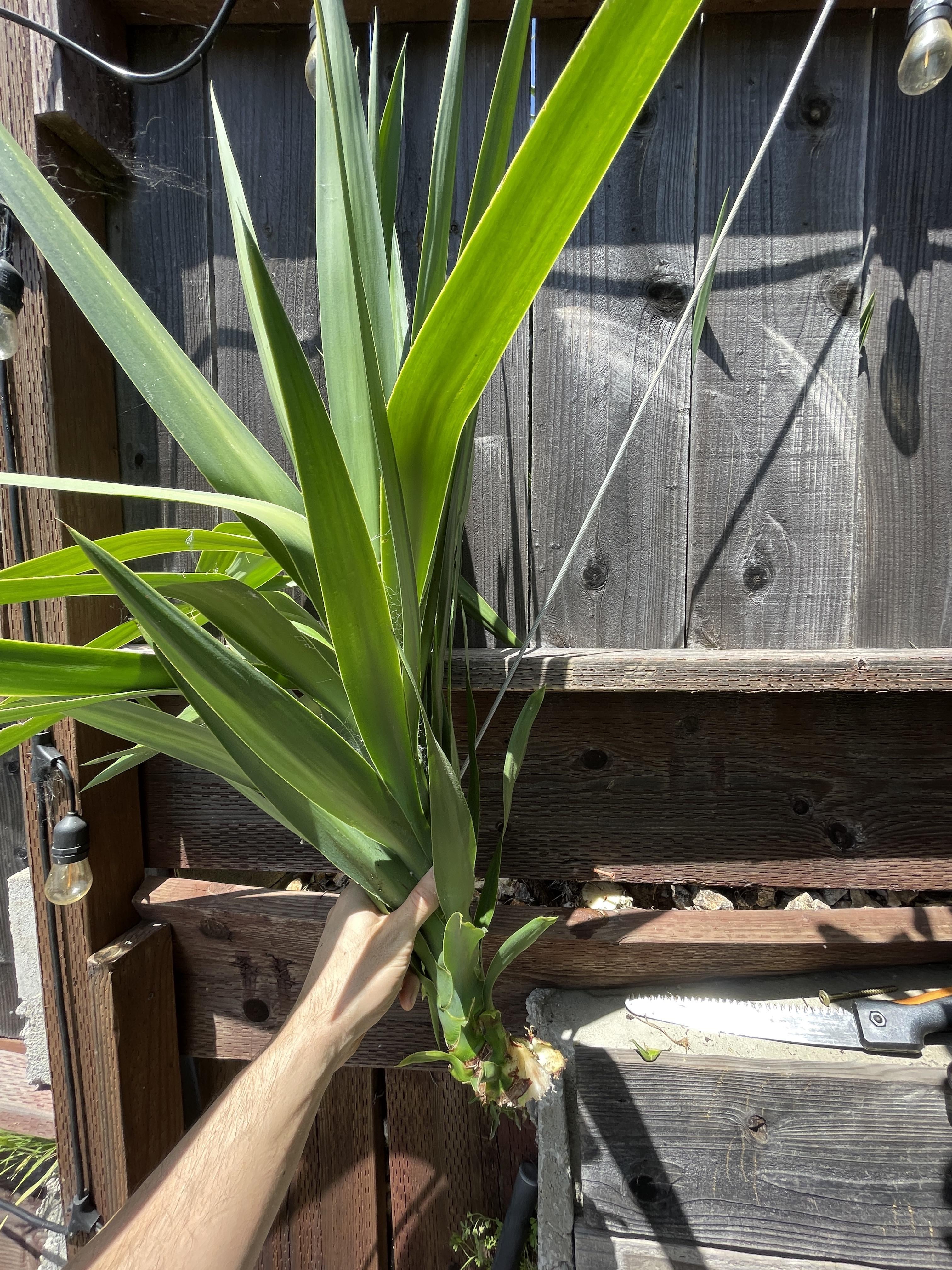 Facebook Twitter LinkedIn Pinterest Bluesky Threads Eine Art von Palmen, die durch den Zaun meines Nachbarn wächst und das Holz drückt … wird es nicht stützen? Von: milanskiiz
