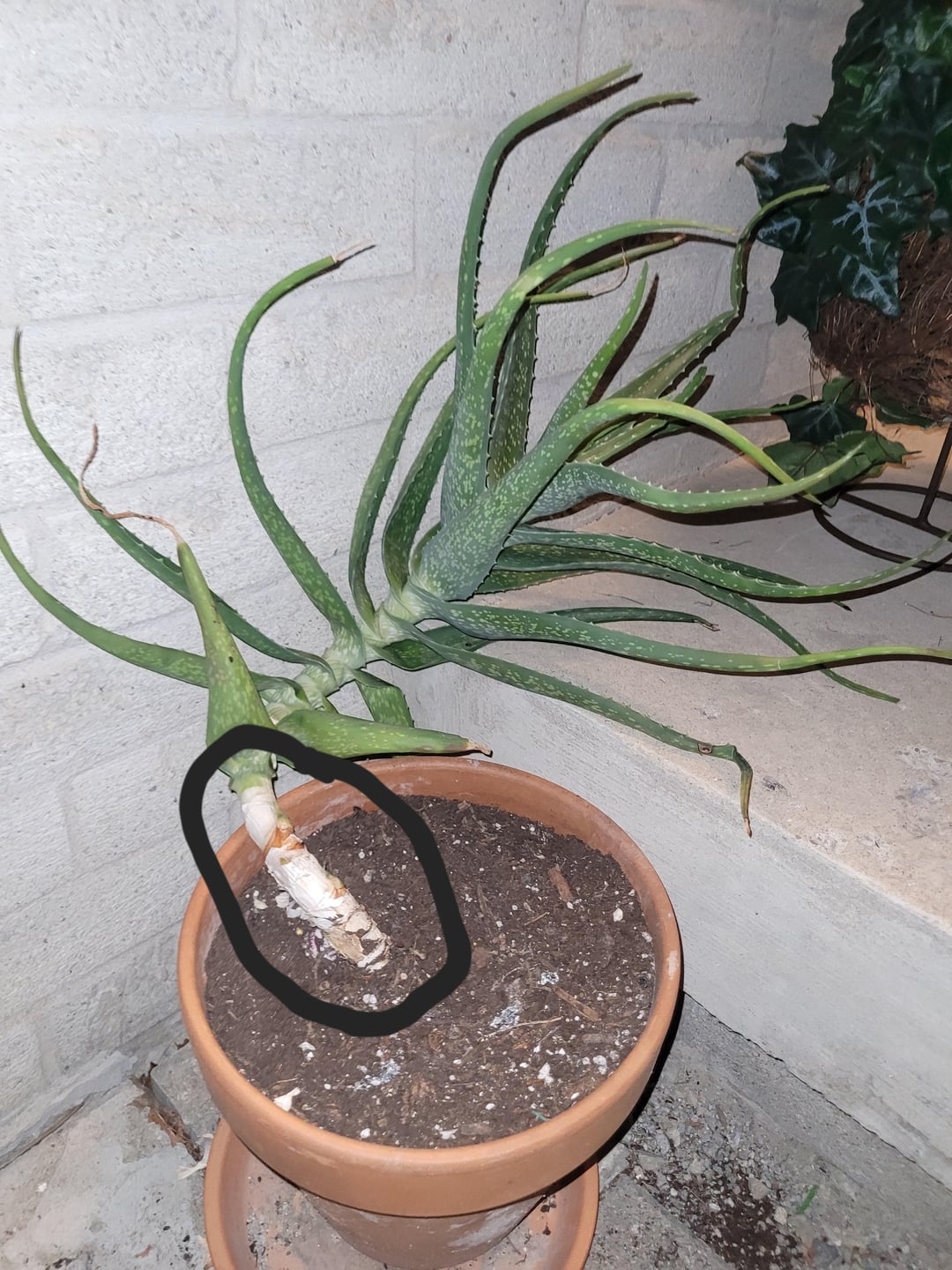 Die Mutter lehnte sich weit weg und hatte viel zu viele Welpen. Die Mutter zu pflanzen ist ein wenig problematisch. Nachdem ich sie herausgezogen und für ein paar Tage austrocknet habe, habe ich sie auf die gleiche Weise getopft. Soll ich den Stiel begraben haben, um sie zu glätten? Bilder zeigen die aktuelle Aloe -Mama, umkreiste Bereich, die ich begraben möchte.