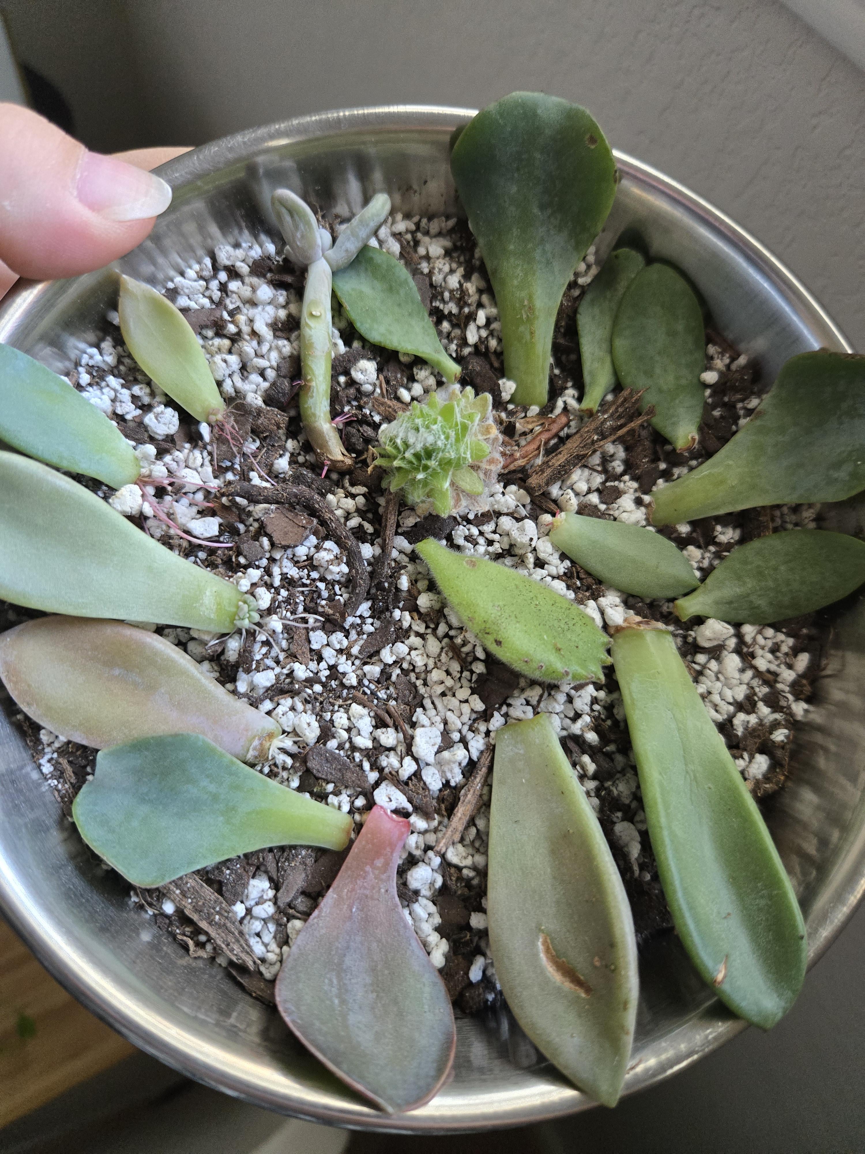 Aufgeregt, rote Wurzeln zu sehen! Und aufgeregt, dass der Stiel der Hühner und Küken Wurzeln wächst, weil ich gedacht hatte, der Stiel sei zu trocken, ich bin froh, dass ich es trotzdem ausschüsse.