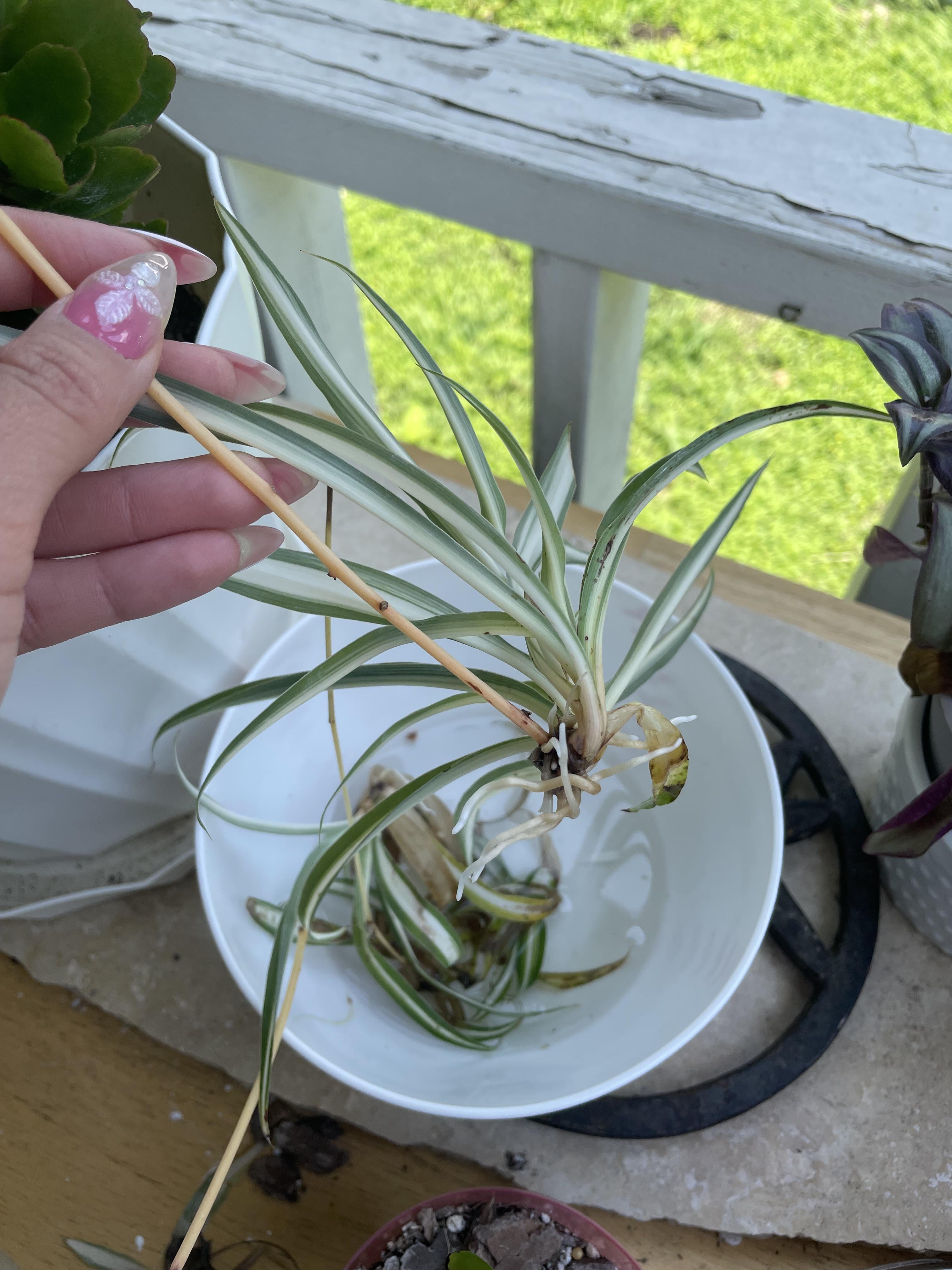 Ich habe diese Spinnenpflanzenbabys angehoben, und es ist ein paar Wochen her, seit ich sie ins Wasser gelegt habe, aber heute habe ich festgestellt, dass einige ihrer Blätter braun werden und verrottet !! Ich glaube nicht, dass ich die kleineren retten kann, aber ist diese große, die ich gut verwurzelt habe, um auf den Boden zu wechseln? Normalerweise würde ich darauf warten, dass sich mehr Wurzeln entwickeln, aber ich möchte nicht, dass die ganze Requisite verrottet.
