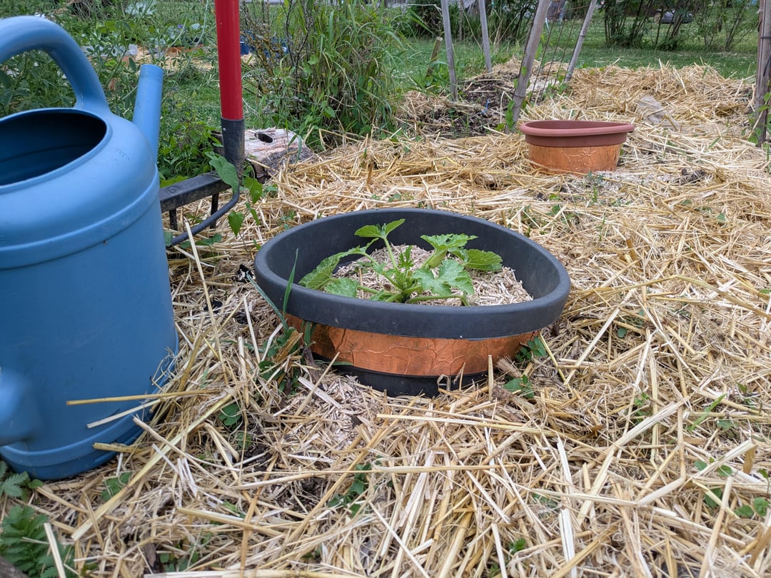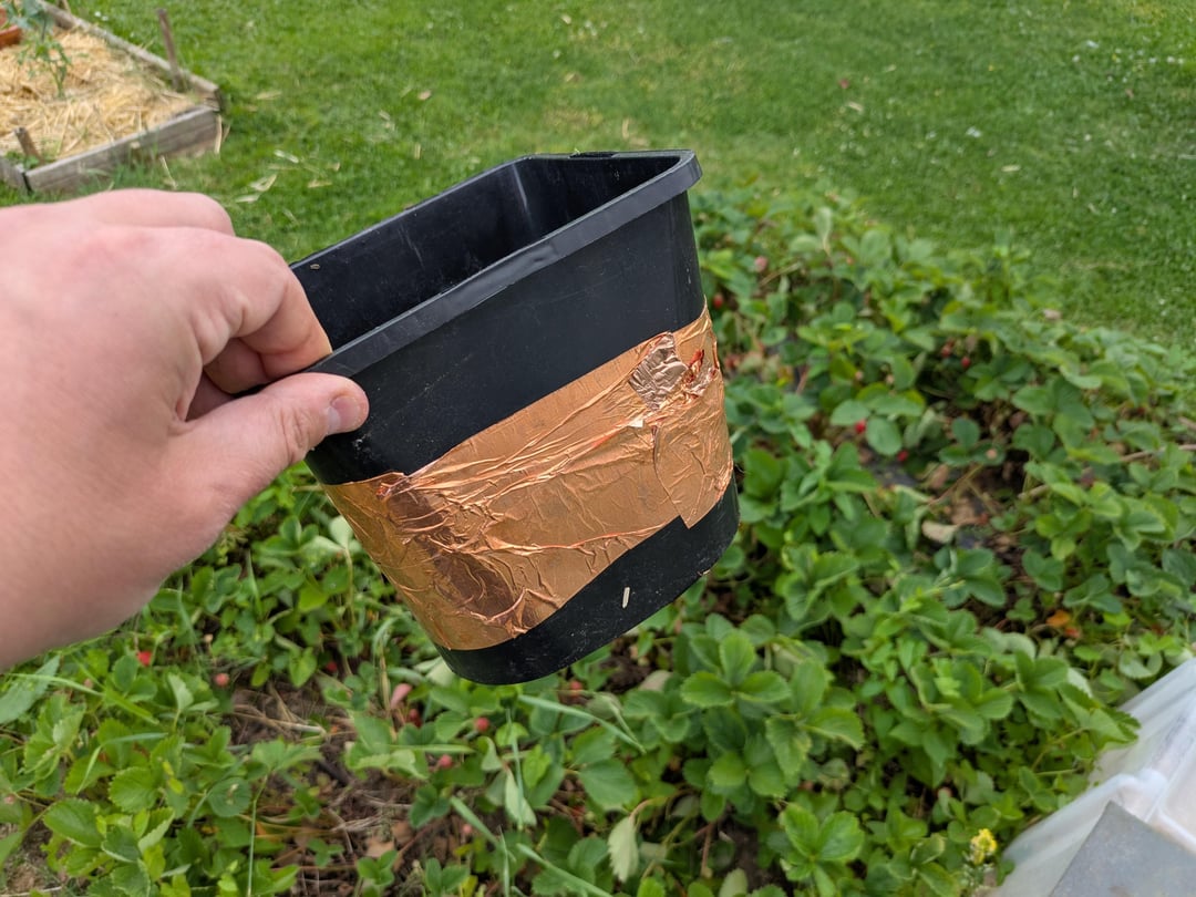 Bevor ich den Boden von Plastoc -Töpfen schneide, um meine Pläne zu schützen. Je größer die Kante ist, desto effektiver ist es, weil es den Schnecken schwierig fällt, sie zu bestehen. In diesem Jahr gab es nicht so viel genug. Ich habe zwei selbstadhäsive Kupferstreifen hinzugefügt und es gibt großartig! Sie mögen es wirklich nicht.
