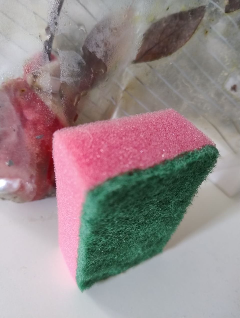 (Entschuldigung für die schlechten Fotos. Aber ich war in Eile, als ich sie nahm. Ich habe einen neuen Schwamm auf das zweite Foto gesteckt, um zu zeigen, welche Art ich im Projekt verwendet habe.)