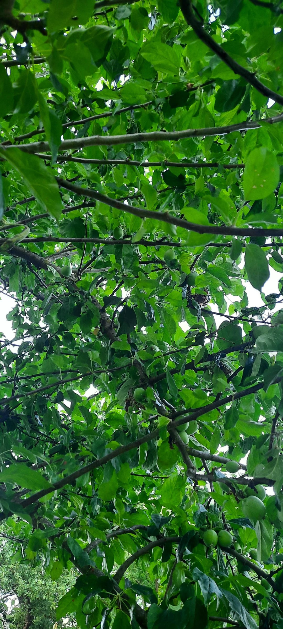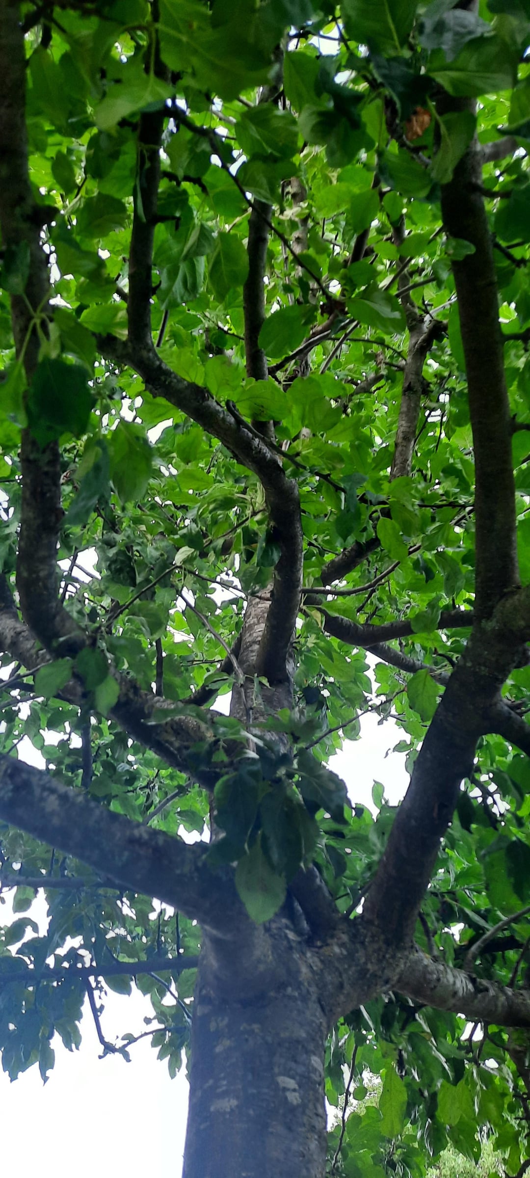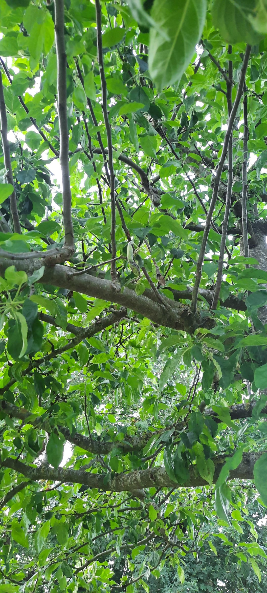 On peut tout de même percevoir des traces de taille. Et le port général de l’arbre me semble bien ornemental. Je vous invite à regarder de plus près car je ne serais pas surpris que cet arbre ait été taillé, et peut être de manière un peu trop sévère. La taille des fruitiers est un art, qui ne s’improvise pas. Si on taille trop, l’arbre, en réaction, va « faire du bois ». Autrement dit il va remplacer les rameaux qu’on lui a taillés, au lieu de faire du fruit. C’est ce que je perçois sur les photos. Il a des rejets très vigoureux qui filent droit vers la lumière. Je vous invite à vous former à la taille des fruitiers auprès d’une association de passionnés comme « les croqueurs de pomme ». Vous allez apprendre plein de choses passionnantes !
