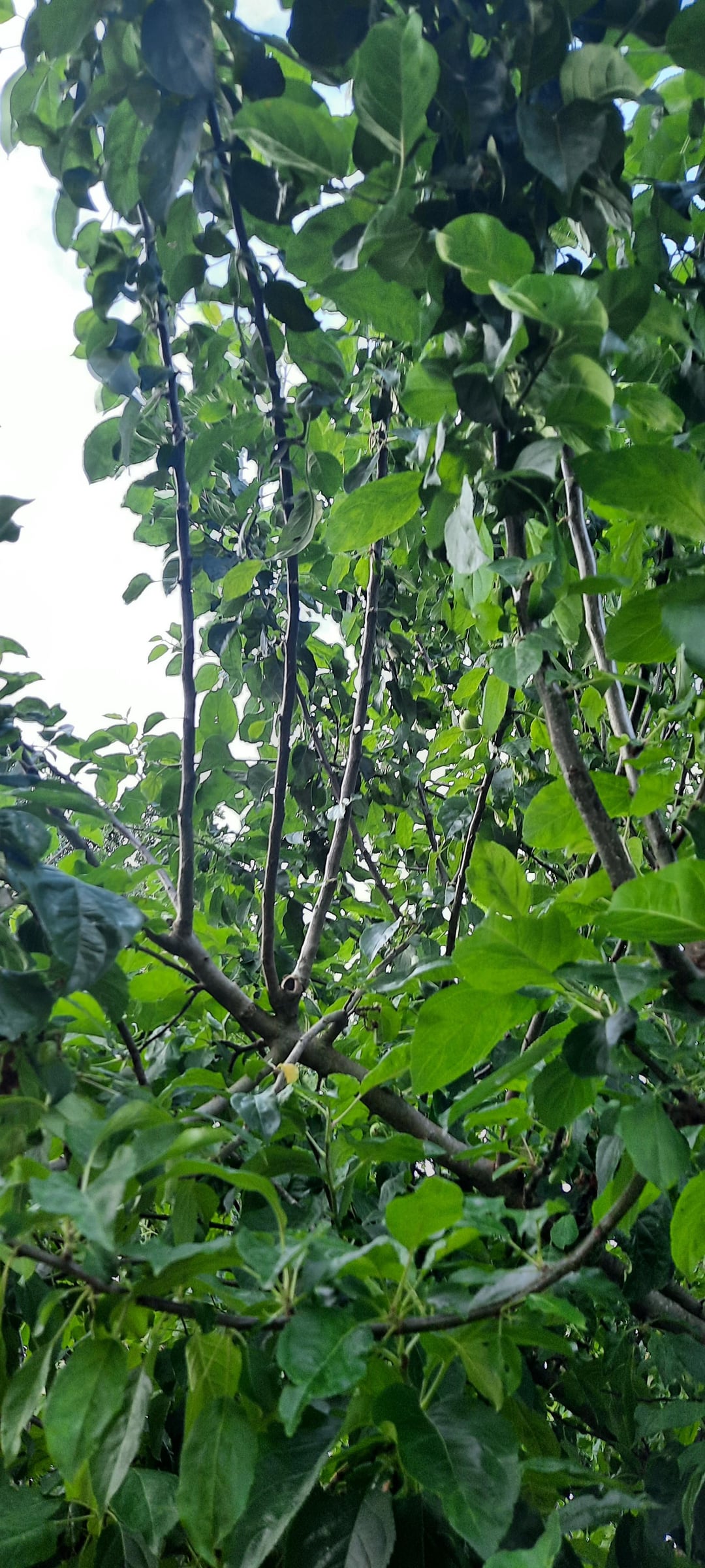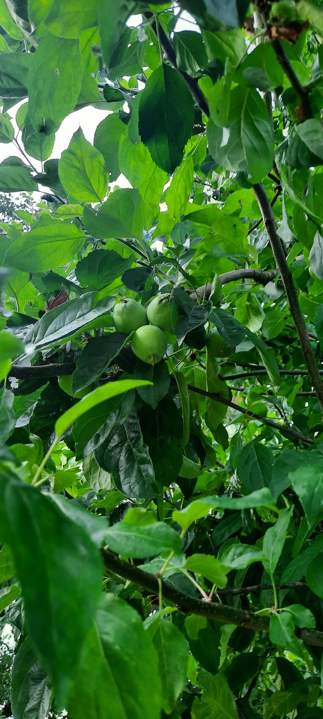 Ich sehe sogar, dass ich auf einer Seite des Baumes, die am meisten der Sonne ausgesetzt war, den Eindruck. Der Baum ist ziemlich buschig, mit vielen Zweigen, die entlang der Hauptäste wachsen. Ich glaube nicht, dass der Baum bereits geschnitten wurde. Könnte die geringe Menge an Äpfeln deshalb sein?