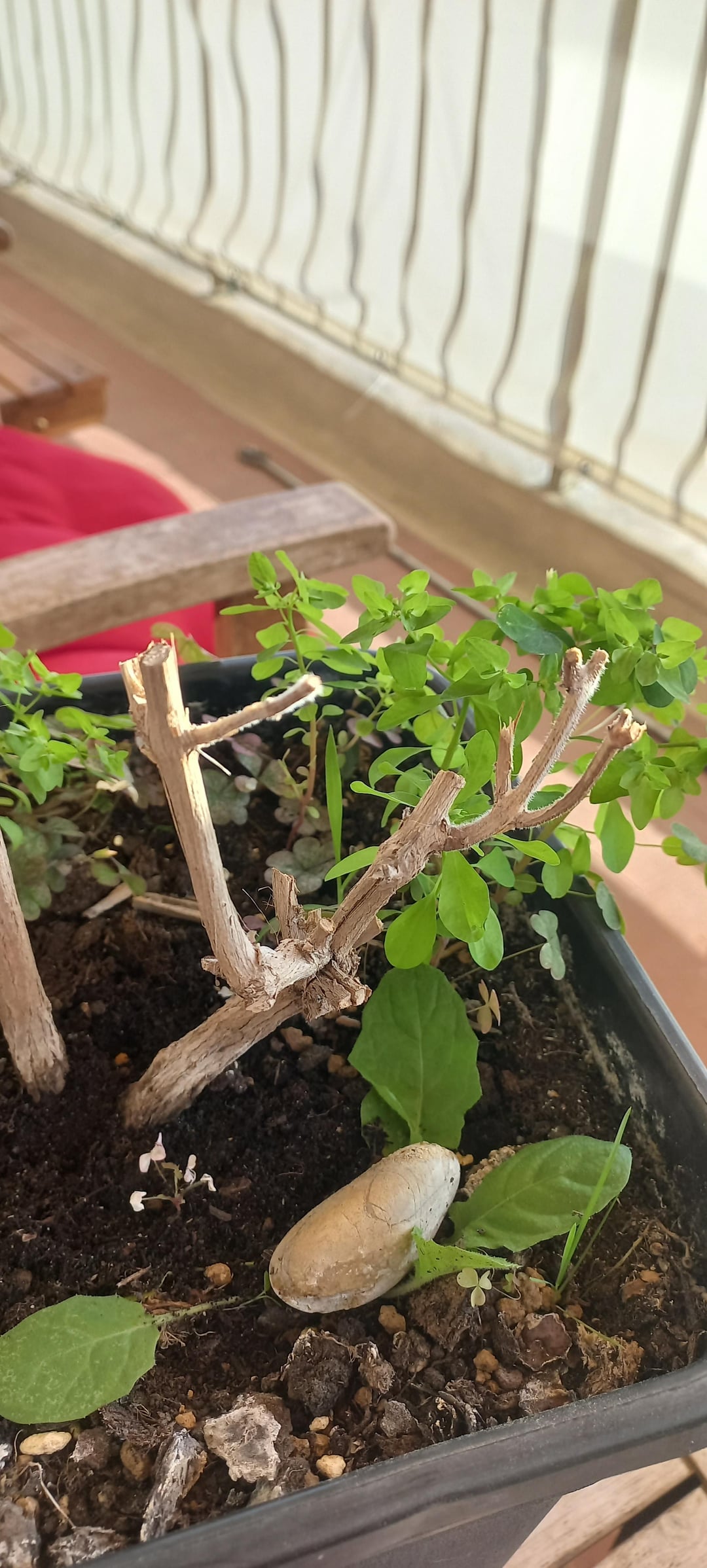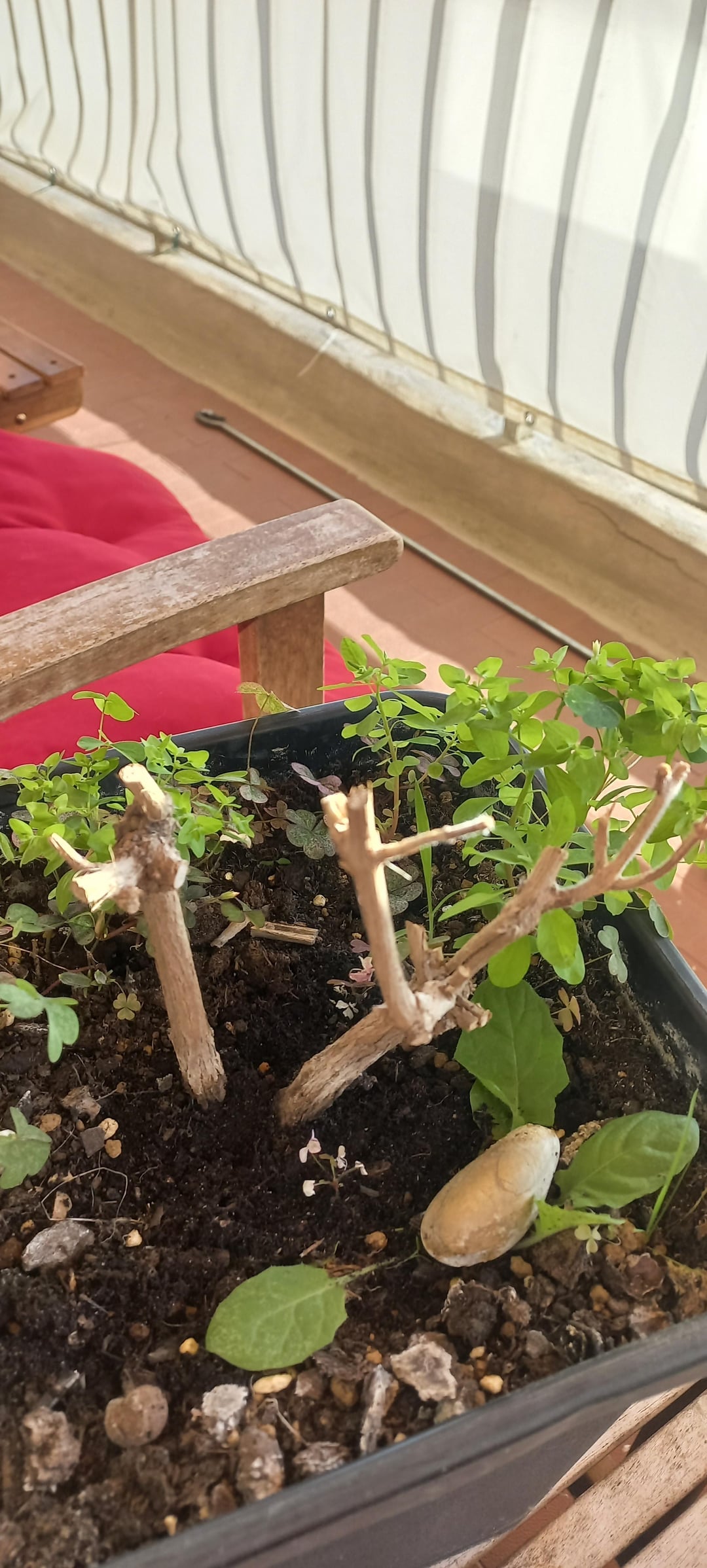 T’as un nom de plante latin pour ce petit spécimen ? Parce qu’un basilic c’est vivace mais pas chez nous, il n’est pas rustique. Par contre j’en ai jamais vu faire du bois, c’est peut être une autre plante qui ressemble au basilic mais c’est autre chose. En tout cas là ton bois il est mort y a 0 bourgeons donc impossible que ça reparte il faut laisser des bourgeons ou du vert quand on taille.