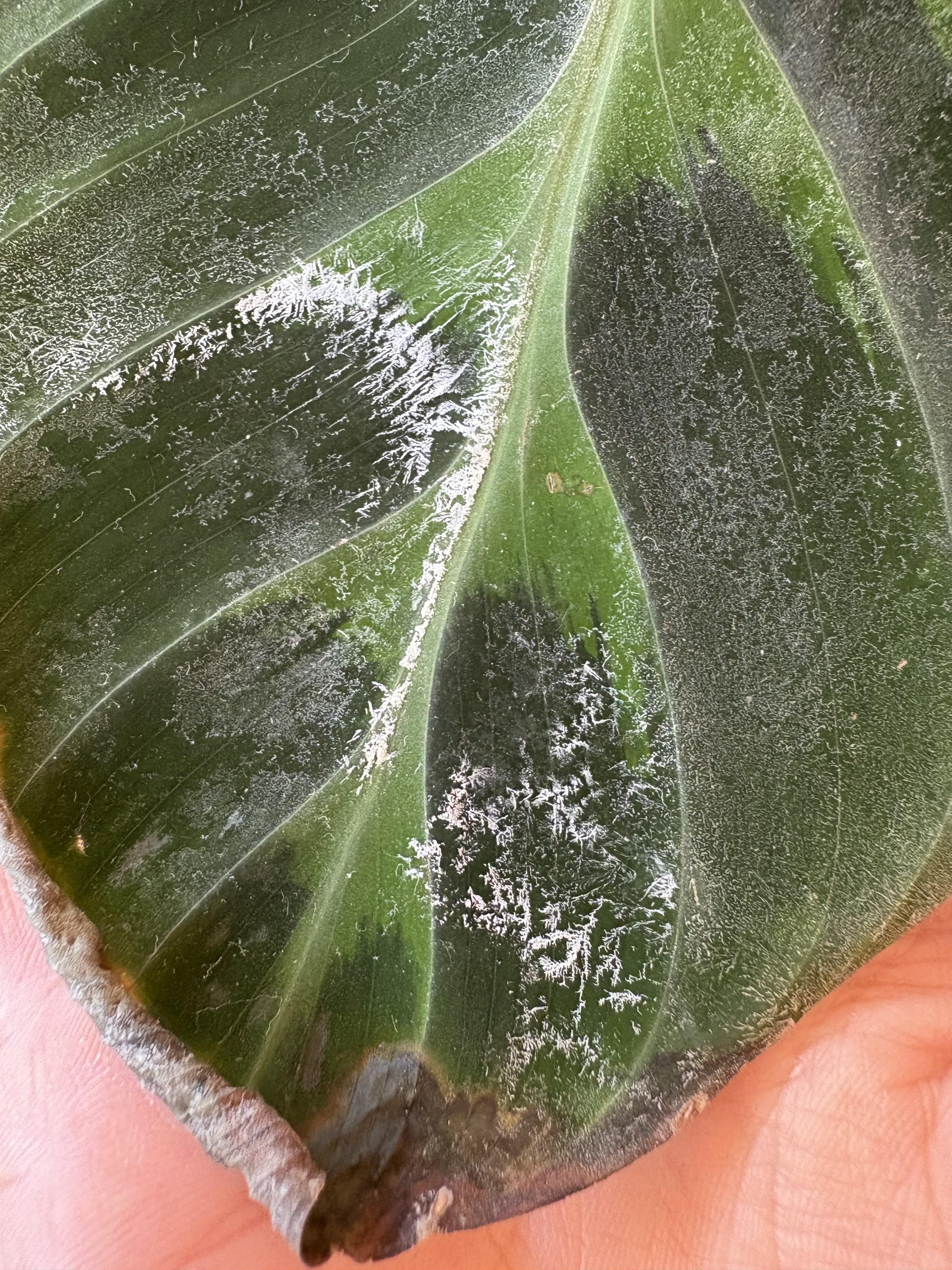 Hallo, ich erlaube mir, zu veröffentlichen, um Ihre Hilfe zu rufen! Ich habe seit ungefähr 1 Jahr ein Calathea und seit ein paar Tagen gab es weiße Flecken, die erschienen sind. Zuerst dachte ich, es sei Schmutz oder Rückstände meines Düngers, also wischte ich mich mit sauberem Tuch und demineralisiertem Wasser ab, aber ohne Ergebnis. Darüber hinaus beginnt das Ende meiner Pflanzen auszutrocknen … ist jemand, wenn ich es retten kann? 🙁