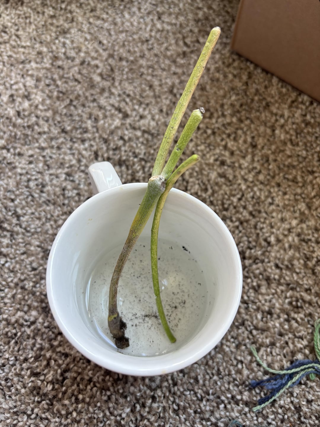 Vielleicht habe ich zu sehr gewässert (zweimal in einer Woche, da ich sie kallus ließ). Ich weiß, dass Wasser nicht die bevorzugte Ausbreitungsmethode ist, aber ich habe bei Reddit einen gewissen Erfolg gesehen. Ich habe kein Prop -Hormon, ich denke, ich könnte bei Bedarf welche bekommen.