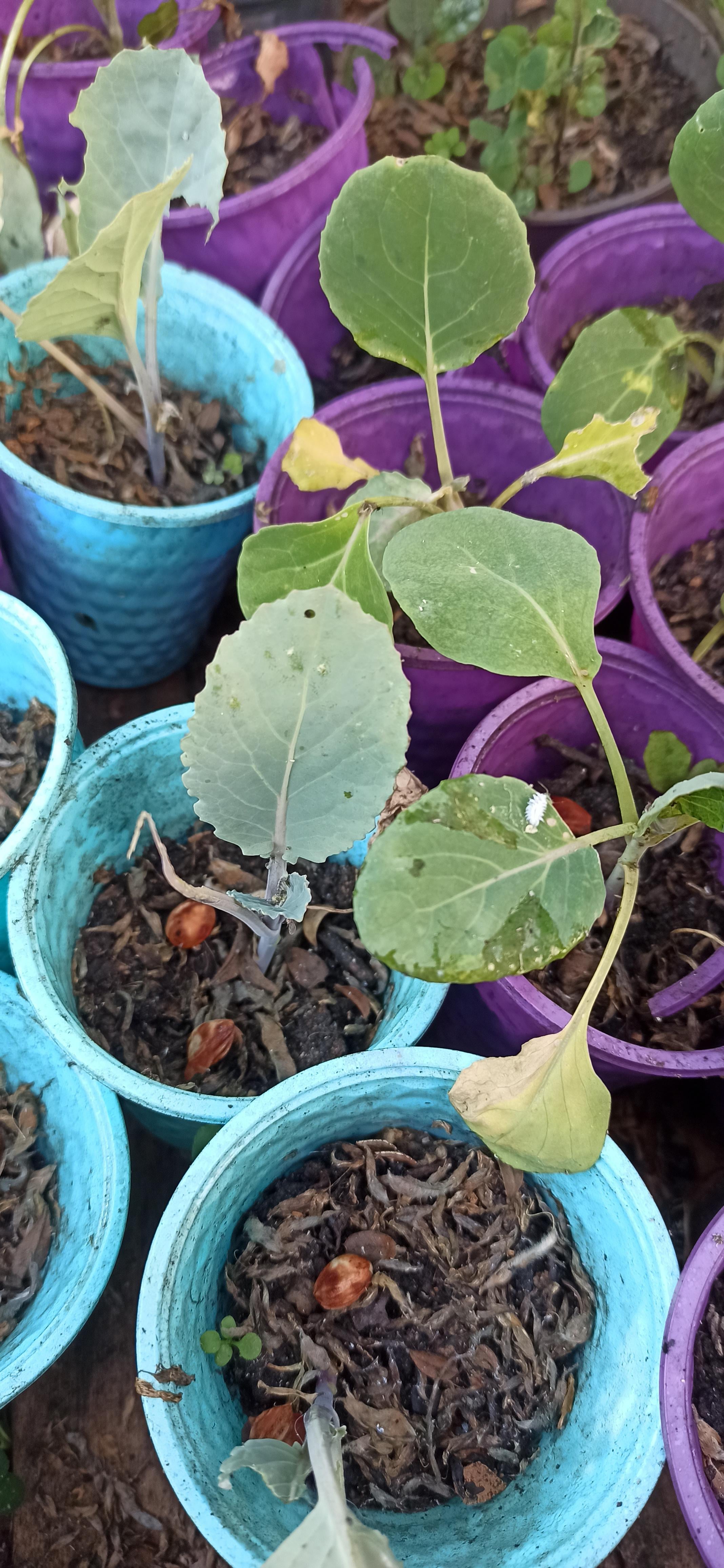 Ich habe die Aussaat von Hiccutors (Sorte "Weiße Flora") und Brüsseler Kohl (Abwechslung "Groninger") Aber ich erinnere mich nicht, welche Aussaat in welcher Farbe von Töpfen ist.