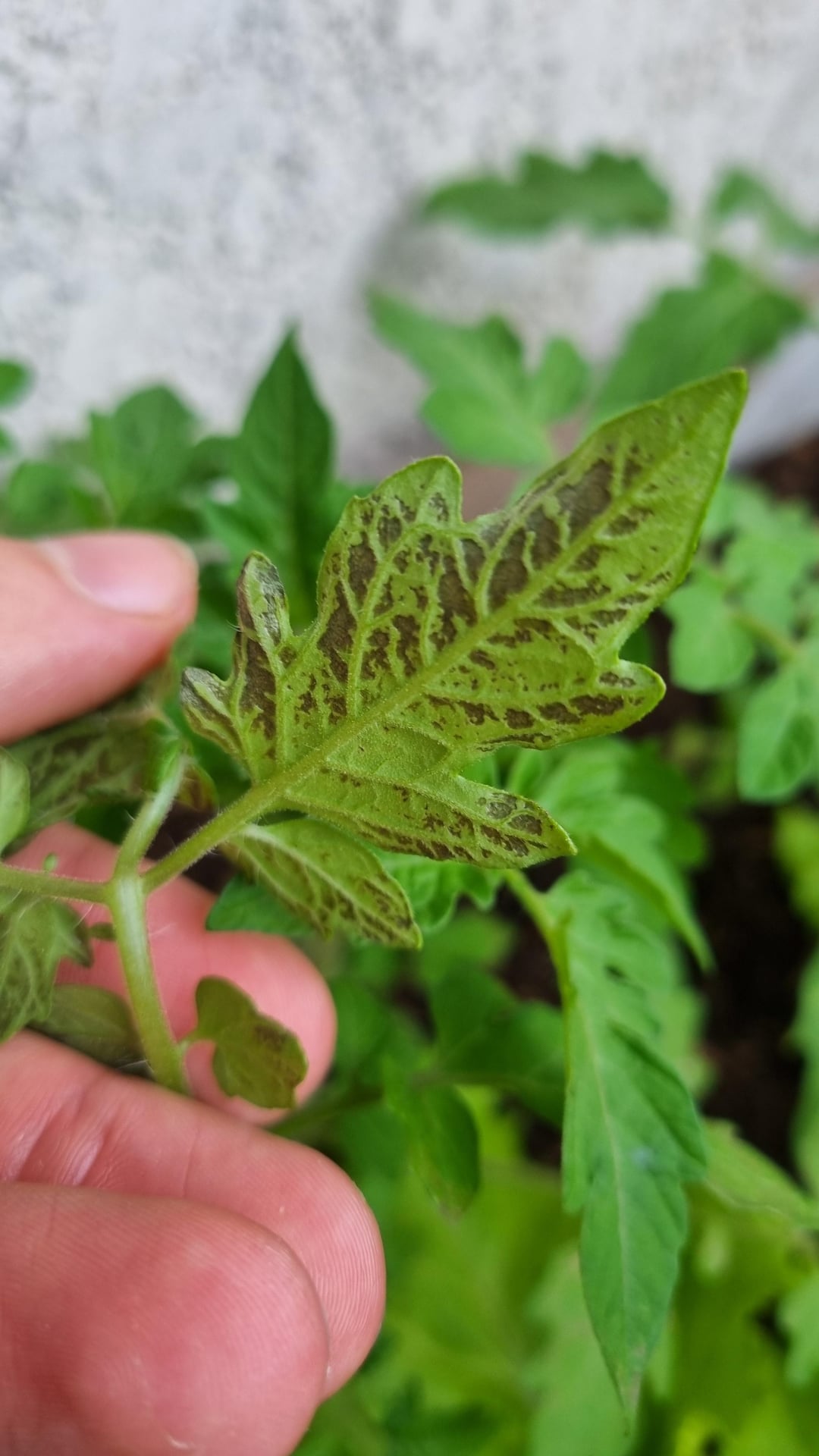Ich habe 4 Tomatenpflanzen und alle haben Anzeichen von schlechter Geschwindigkeit. Die Blätter erscheinen oben und schwarz auf der Unterseite. In ein paar Tagen erstreckt es sich. Ich gieße sie 1 Mal am Tag.