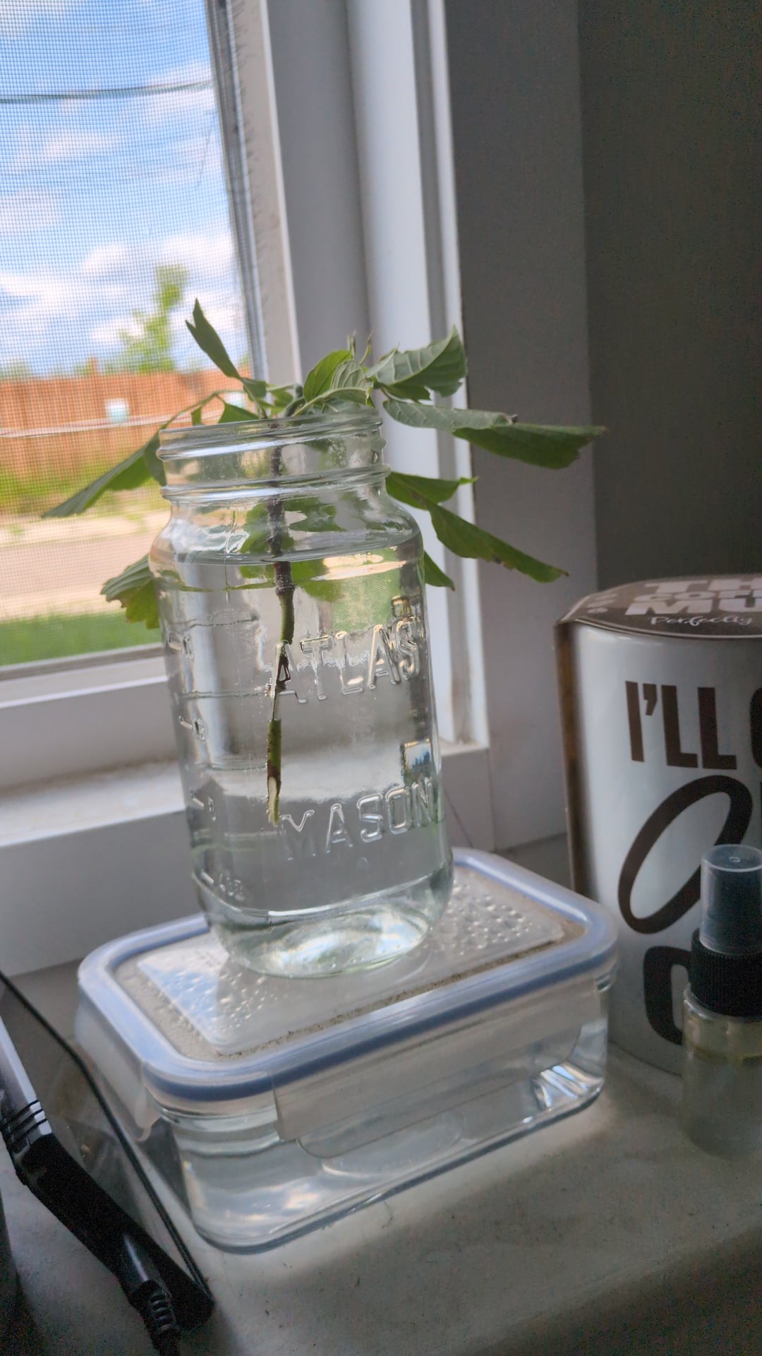 Ich habe kein Wurzelhormon, ich habe sehr wenig Wasserstoffperoxid eingebracht und Brita -Wasser verwendet, weil Leitungswasser hier Schleim oder etwas darin enthält.