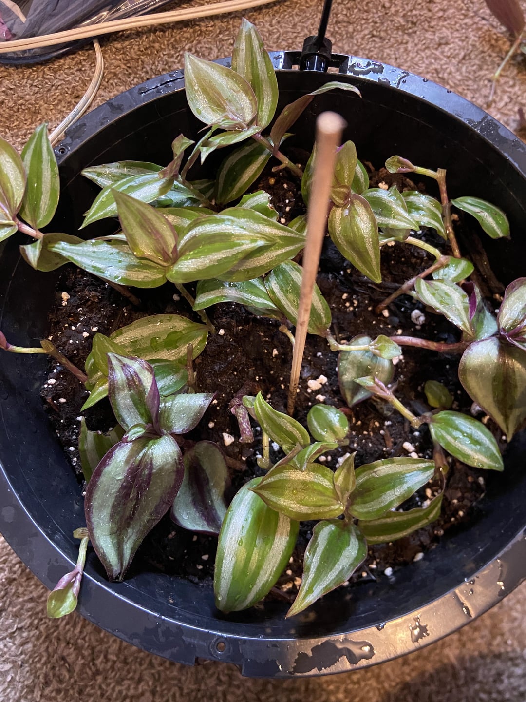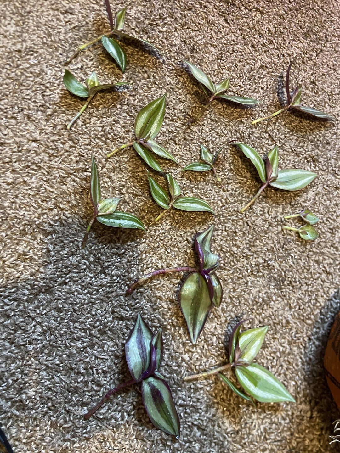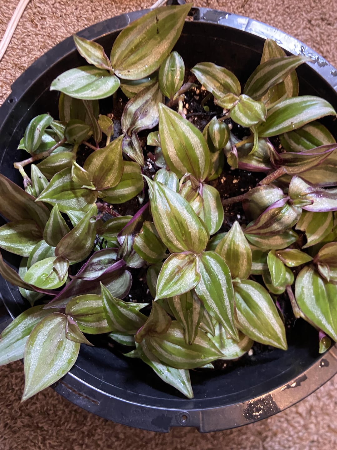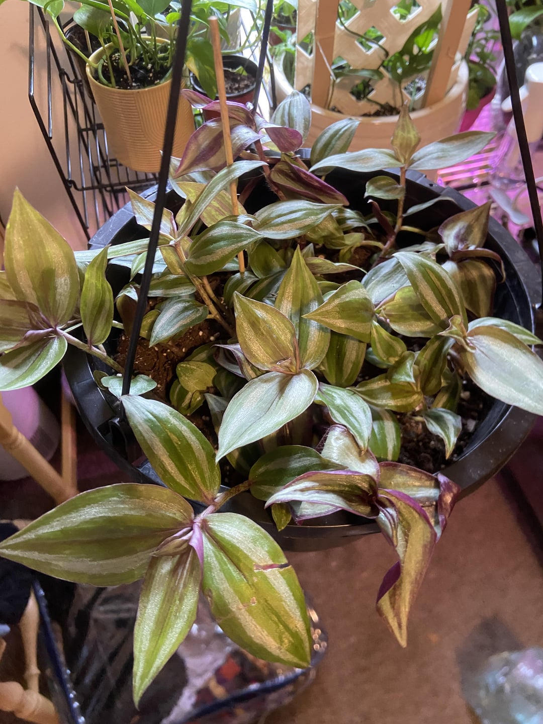 Diese Tradeskantie war der Beginn meiner Besessenheit. Eine meiner verzeihendsten Pflanzen. 💜🥲 Tolle Wahl für Anfänger. Das letzte Bild zeigt, wie belastbar sie sind, ich habe einen von ihnen auf nur einen Knoten geschnitten und es hat immer noch ein Blatt herausgespielt!
