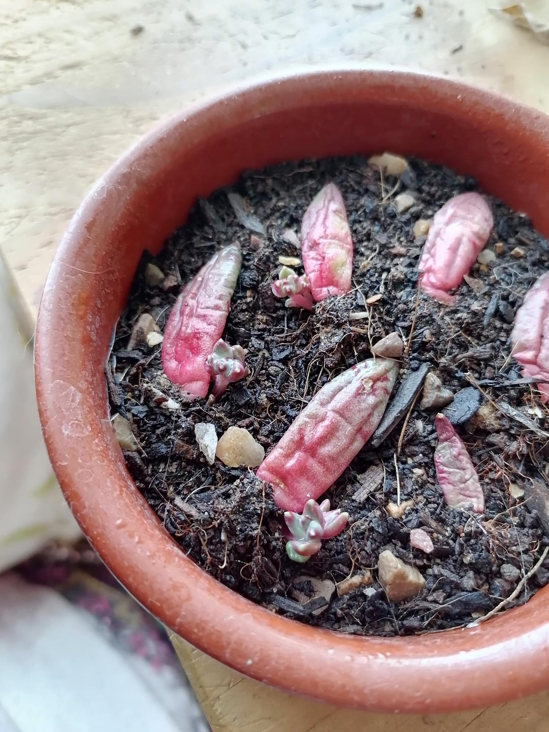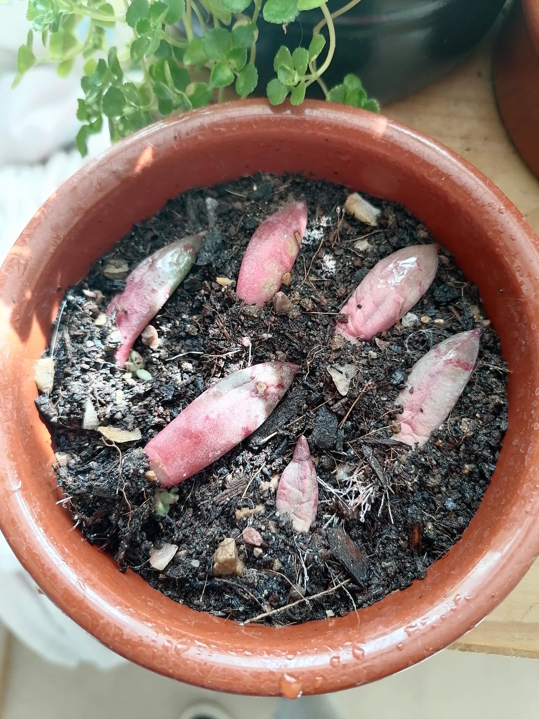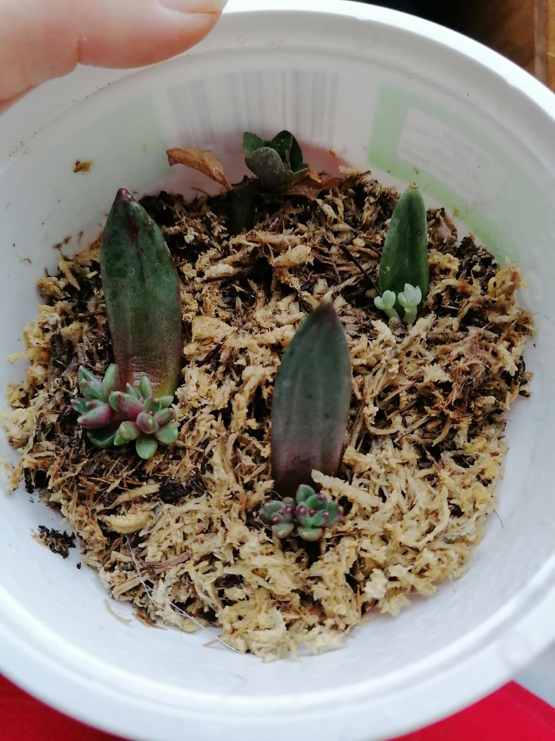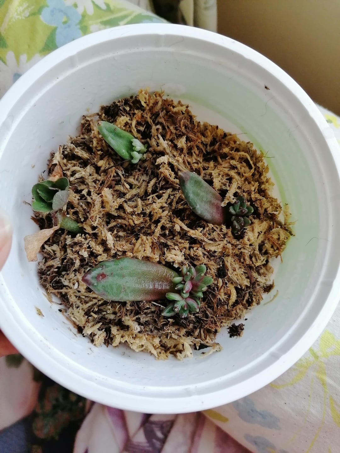 Die Bilder 1-4 zeigen meinen ersten Versuch, eine einzelne Blatt-Sukkulenten ausbreiten zu können. Die Bilder 5 und 6 zeigen einen neueren Versuch, aus irgendeinem Grund scheinen sie in Sphagnum -Moos (nur Substrat, das ich damals hatte) erfolgreicher zu sein als diejenigen mit saftigem Boden, obwohl sie 2 Monate jünger sind. Hat noch jemand ähnliche Erkenntnisse gehabt?