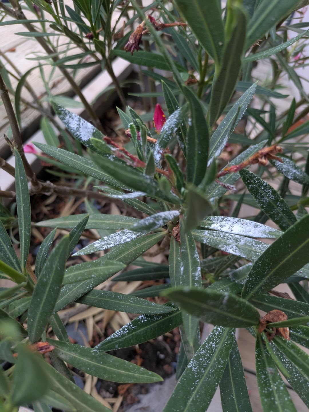 Facebook Twitter LinkedIn Pinterest Bluesky Threads Auf einem rosa Lorbeer in einem Topf, sehr exponiert Von: ryancey