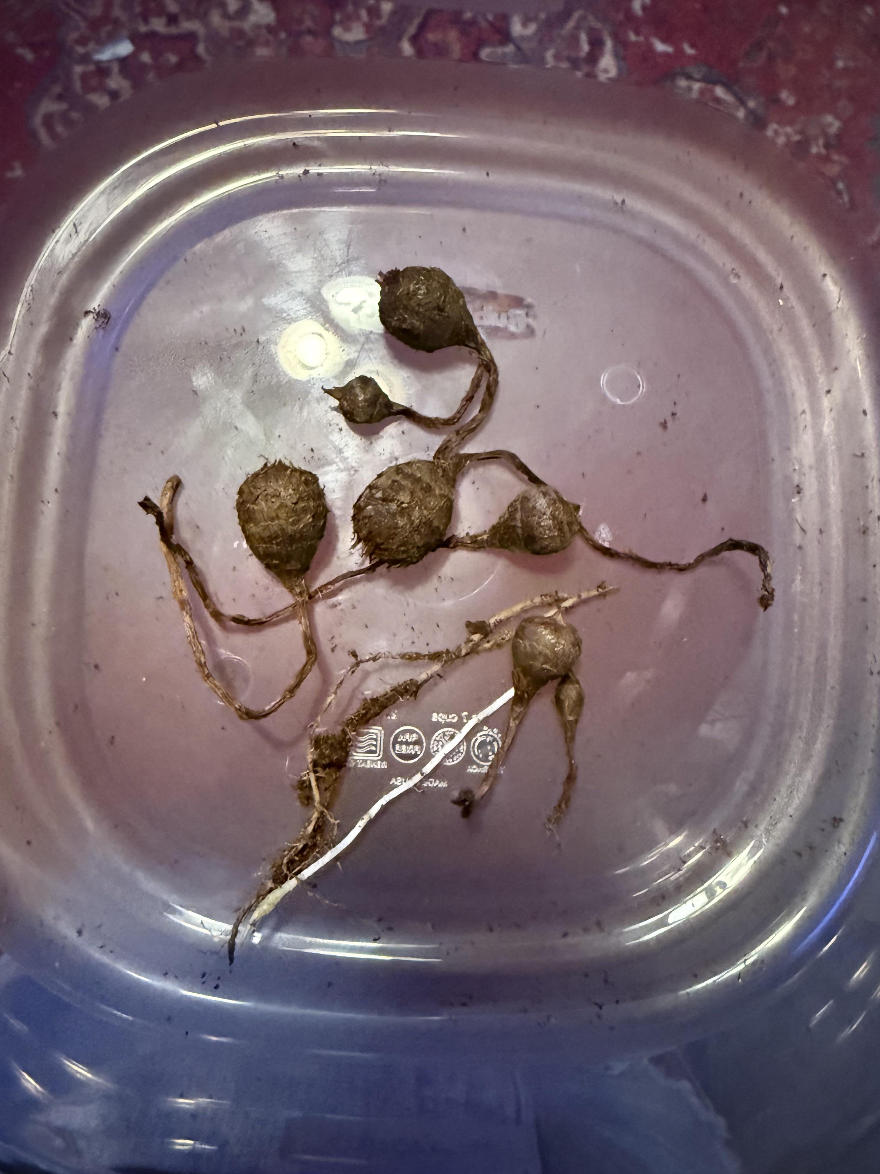 Die Wurzeln sahen ziemlich rau aus, und am Boden der Pflanze befanden sich mehrere Kürze. Sie sehen irgendwie ausgetrocknet oder möglicherweise tot? Ich bin mir nicht ganz sicher. Ich habe CORMS noch nie zuvor verbreitet und könnte wirklich Ratschläge verwenden. Woher weiß ich, ob sie immer noch lebensfähig sind? Und wenn dies der Fall ist, wie können Sie sie am besten zum Laufen bringen?