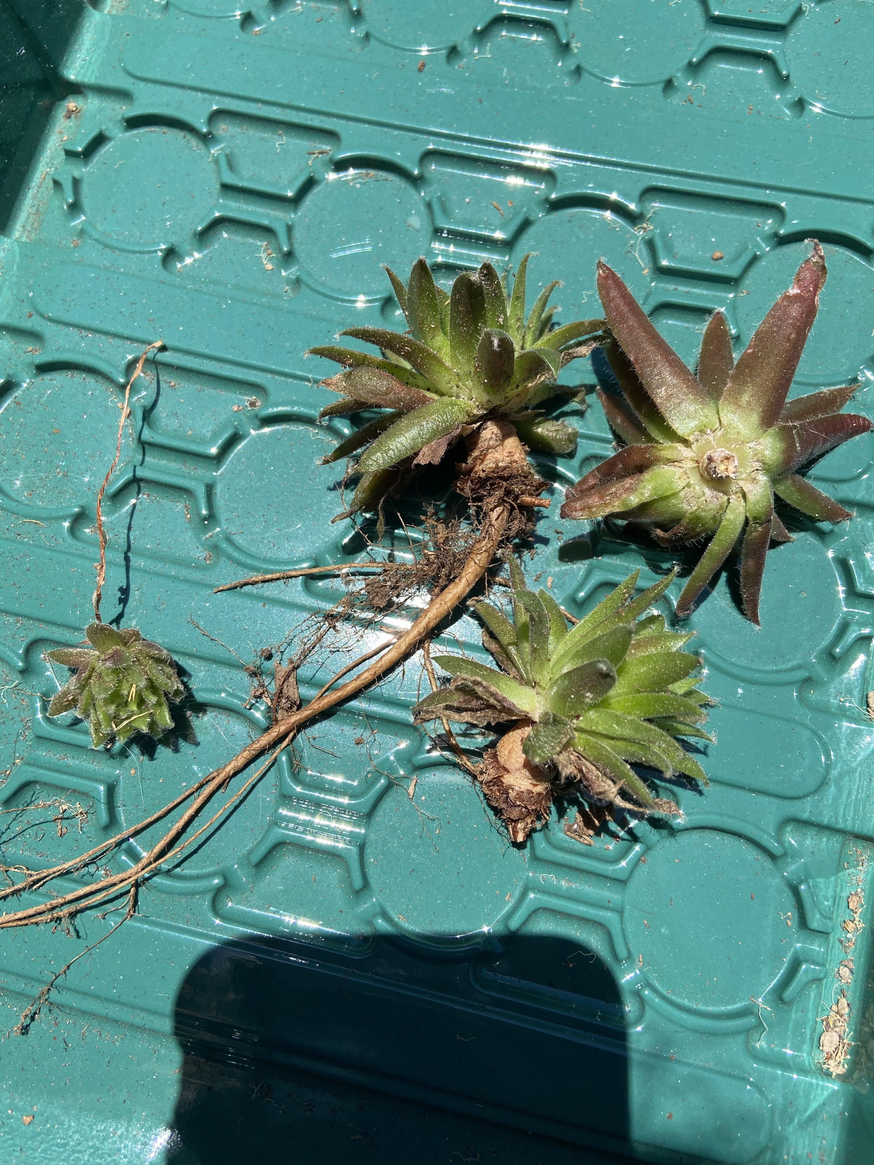 ICH "gerettet" Diese Sempervivum -Rosetten aus einer Pflanze mit Fäulnis und Mealybugs. Ich habe die gesunden Portionen entfernt und habe Isopropylalkohol verwendet, um die Mahlzeiten loszuwerden. Eine der Rosetten hat Wurzeln (und der Kleine hat ein paar), aber die anderen beiden haben keine Wurzeln (nur Stamm). Ist es möglich, sie zu rehabilitieren? Wenn ich das Wurzelhormon auftrage und sie in einen trockenen Boden stecke, werden sie Wurzeln? Ich hatte noch nie Sempervivum; Nur Echeveria, Graptopetalum, Crassula und Sedum.