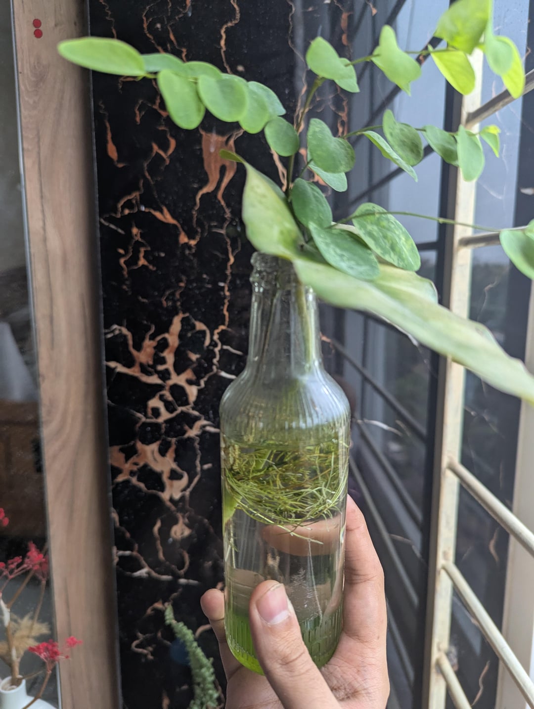 Facebook Twitter LinkedIn Pinterest Bluesky Threads Das große flache Blatt ist ein Philodendron Burle Max, mit dem ich den Schneebush -Schnitt ausruht, damit er nicht durch den Flaschenhals fällt. Von: PretentiousPepperoni