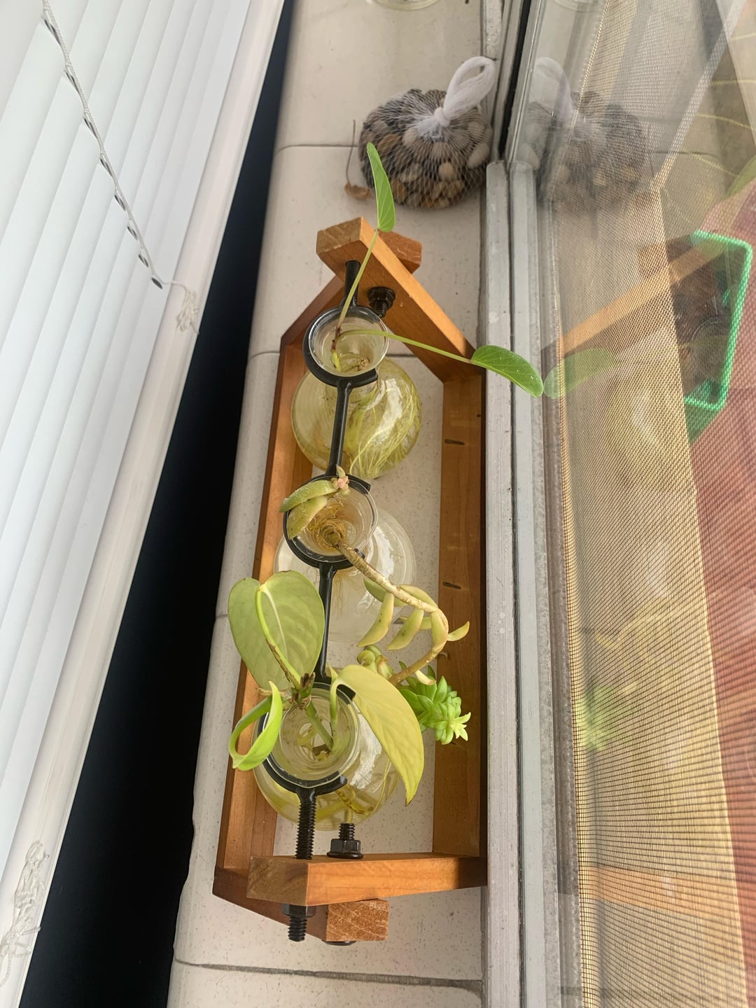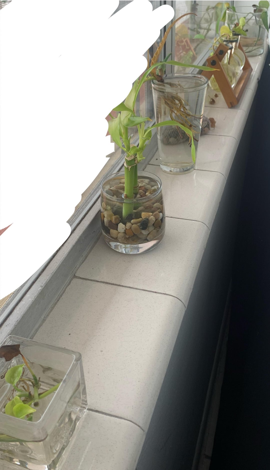 All diese Fensterbabys waren gerade genommen. Ich habe vor ein paar Monaten mit einigen anderen Menschen gelebt und sie hatte jede Menge Pflanzen in ihrem Garten, aber sehr vernachlässigt. verschüttete Töpfe, rissiger trockener Boden, Pflanzen, die durch Unkraut angegriffen wurden. Also habe ich das getan, was jede logische Pflanze tun würde, und nahm alle Teile mit Potenzial, steckte sie in Wasser, und das habe ich so weit. Dies ist meine erste Einstellung in meinem kleinen Kindergarten. Es war eine Reise … Lotttts von feuchten Wurzeln, grünes Wasser, nicht so häufig. Aber ich denke, ich habe es ziemlich gut gemacht, sie am Leben zu erhalten. Ich bin ein stolzer Pflanzen -Ersatz. Wenn Sie wissen, was irgendetwas davon sein könnte, lassen Sie es mich wissen 🙂 Ich glaube, der Große am Ende ist ein Pothos. Die beiden Stöcke sind glücklicher Bambus (gekauft diejenigen, die sie nicht zählen), aber ich habe sie am Leben erhalten. und ich bin wie zu 98% sicher, dass Spikey One Aloe ist