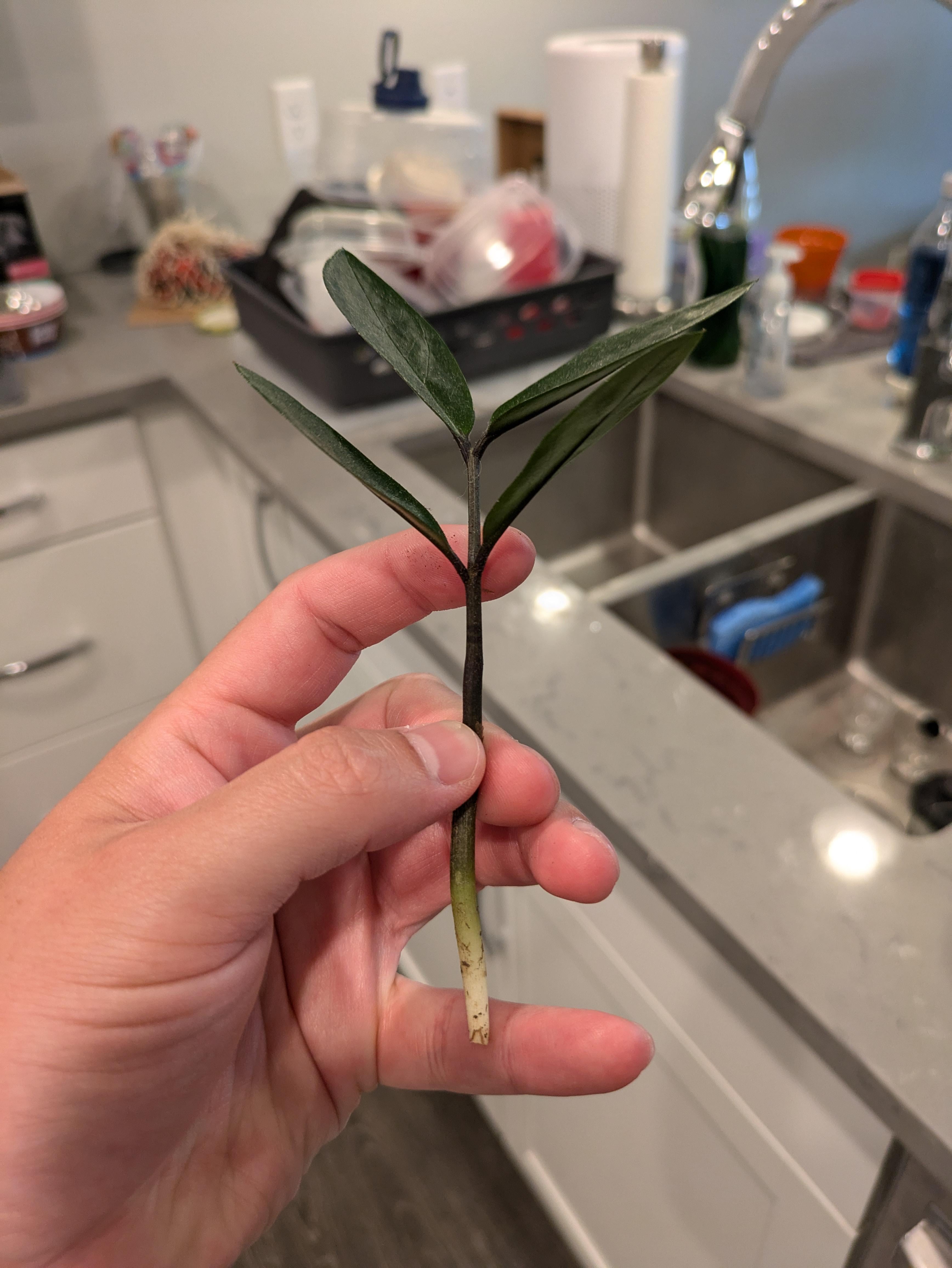 Facebook Twitter LinkedIn Pinterest Bluesky Threads Es ist eine ZZ -Pflanze. Es brach an der Basis ab, als ich mich abpottte. Und wenn es gut ist, sollte ich Wasser, Boden oder Moos -Stütze tun. Von: FlounderKind8267
