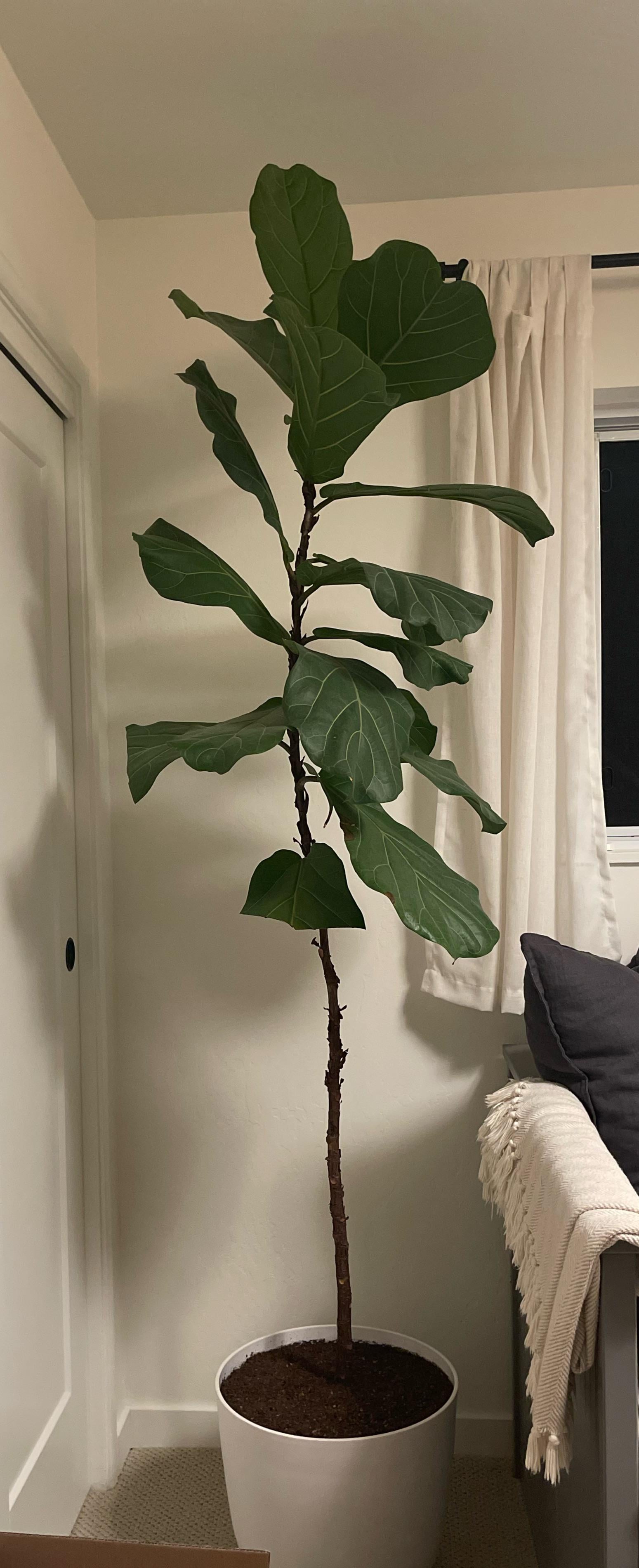 Erhielt diesen großen FLF von einem Freund, bevor er durch das Land zog. Er hat in den 2 Jahren, in denen ich ihn hatte, ein paar Blätter fallen gelassen. Die Tipps haben gebräunt (wie Sie sehen können, habe ich diese Teile abgeschnitten). Er ist auch ein wichtigerer schlanker (gebundene Angellinie an der Wand, um ihn aufrecht zu halten). Ich habe viele Innen- und Außenanlagen mit Erfolg propagiert, aber nie ein FLF. Er scheint zu erstklassig zu sein und ich möchte hacken, weiß aber nicht, wo er schneiden soll. Würde sich über Tipps freuen! Zu Ihrer Information, Zone 10, Wasser 1-2x Monat, er ist in einem nach Norden ausgerichteten Fenster.