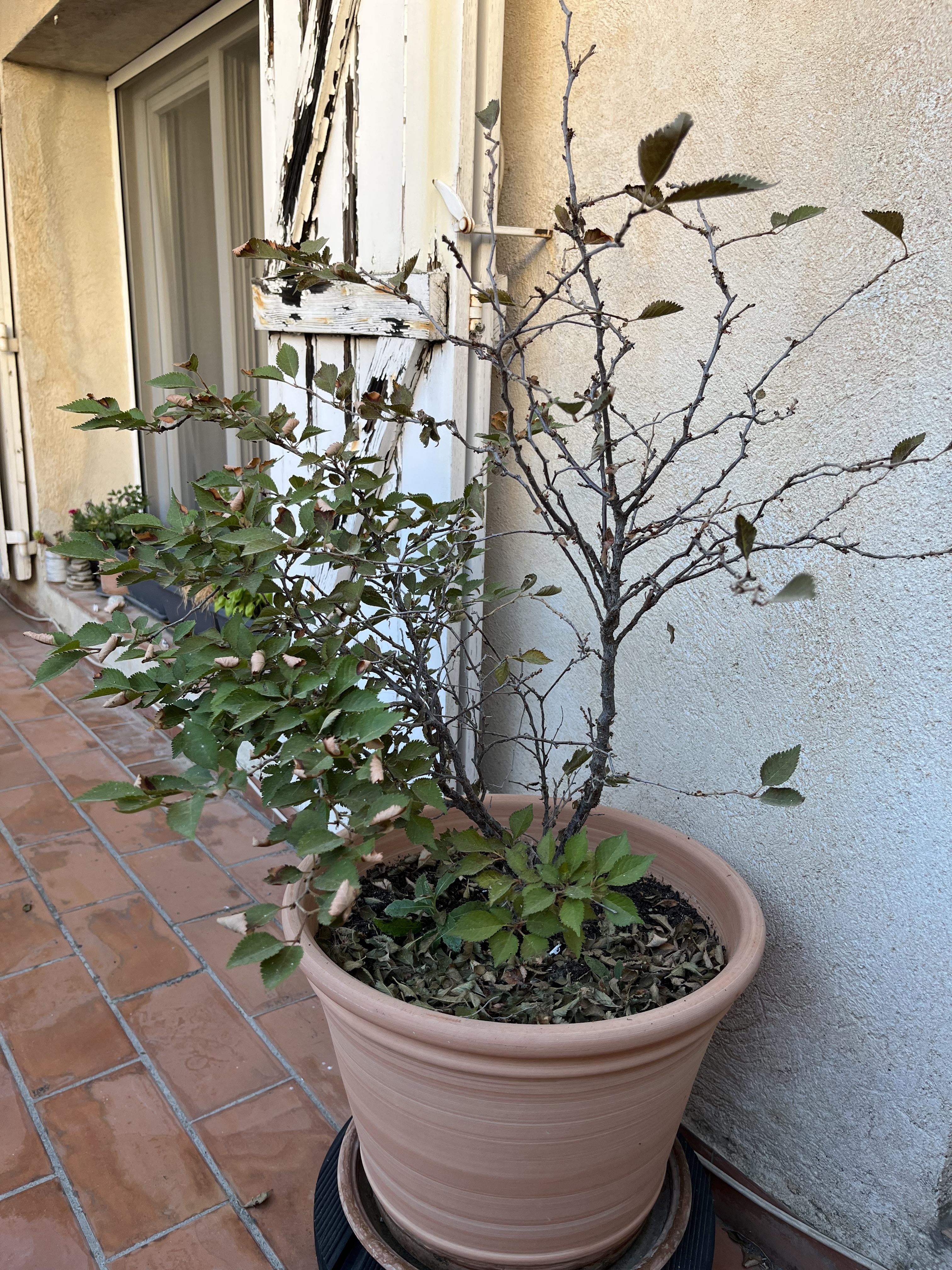 Ich habe viel mit dieser kleinen Kirsche zu tun, die ich seit 3 Jahren ungefähr 3 Jahre lang habe. Jede Frühling deniiert es schöne grüne Blätter, dann blüht es. Im Herbst errötete er und verliert seine Blätter im Winter. Abgesehen davon, dass ich in diesem Jahr Anfang Juni 10 Tage verließ, war es zu dieser Zeit sehr heiß und nicht bewässert. Ich steckte es in den Schatten und treue reichlich vor, bevor ich abreist. Als ich zurückkam, hatte er ein wenig weich und 25% vom Ende seiner Blätter getrocknet. Heute kann ich es vorher nicht zurückgeben. Es sieht so aus, als ob eine volle Hälfte tot ist, ich habe alle toten Blätter entfernt, aber die andere Hälfte, obwohl nicht passt, scheint zu überleben. Was zu tun? Sollen wir schneiden? Hier ist ein Foto, um besser zu verstehen. Ich danke Ihnen für Ihre Hilfe!
