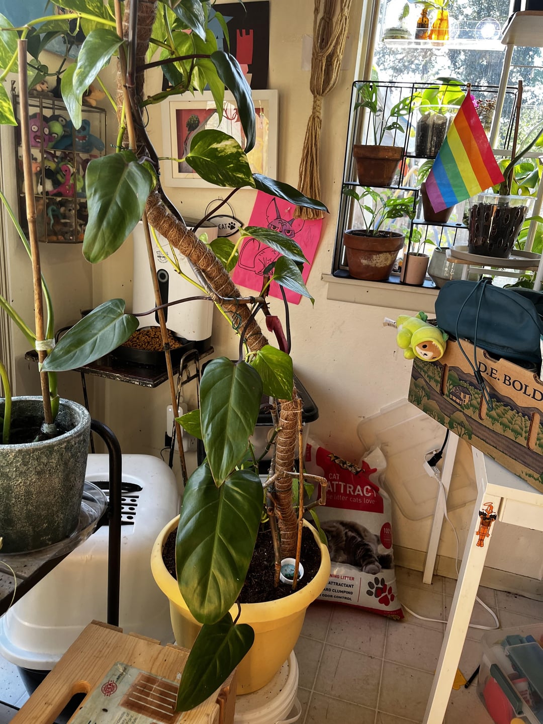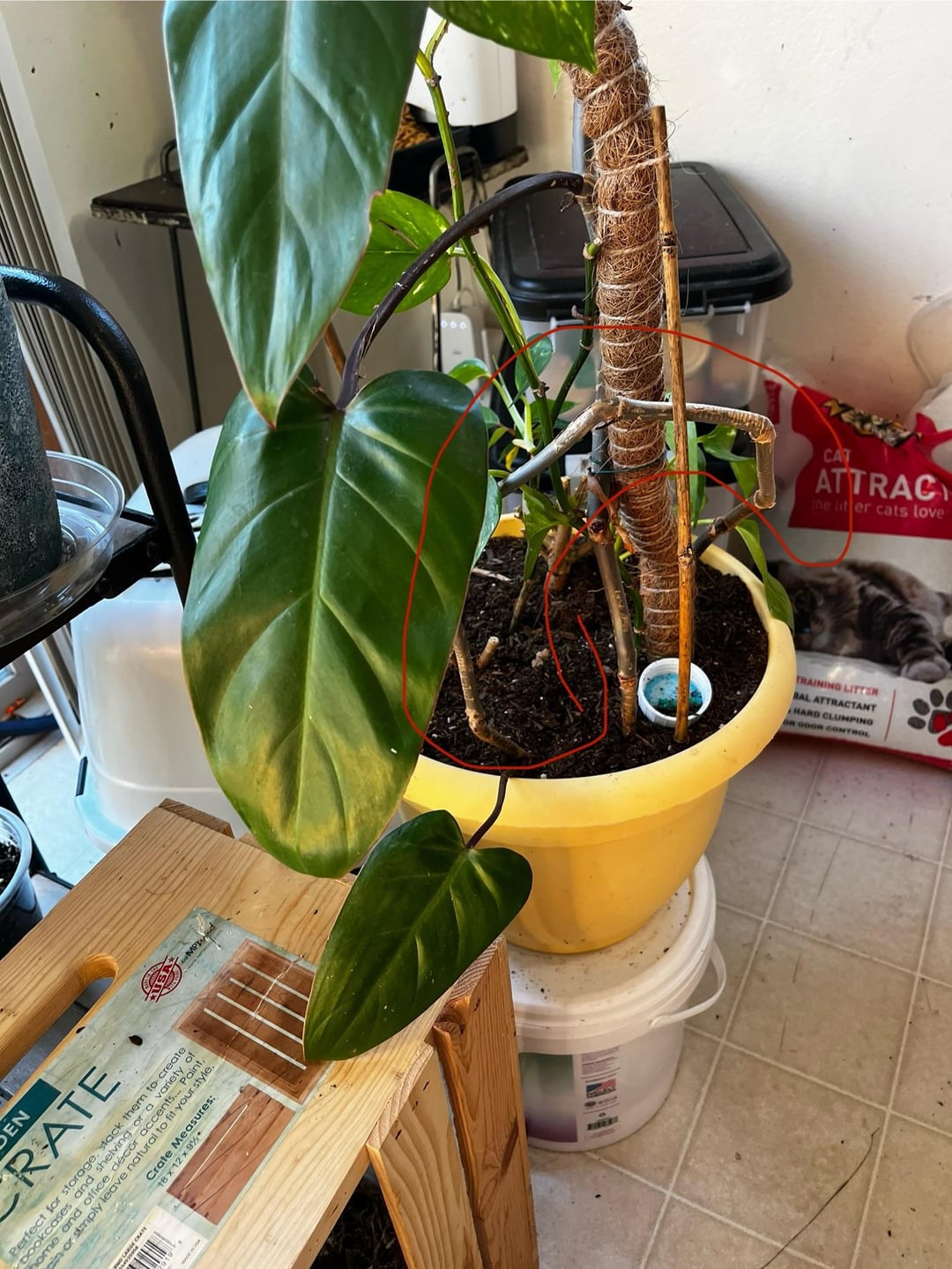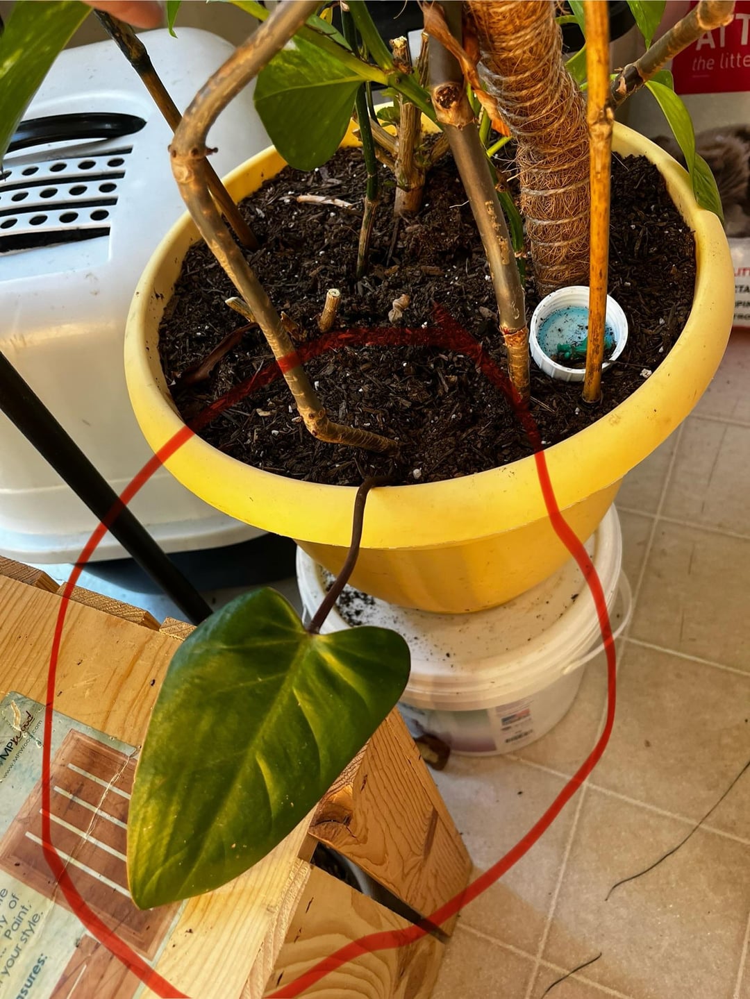 Ich habe diesen Kerl vor ungefähr einem Jahr am Straßenrand gefunden. Da ich diese Pflanze gerettet habe, scheint es, als hätte ein Teil seiner Rebe wiederhergestellt … (Ich bin mir nicht sicher, wie es heißt, aber beide Seiten der Rebe sind im Boden.) Nach einer Weile machte sich ein Blatt daraus auf den Weg zur Oberfläche. Ich möchte das Blatt zu einer neuen Pflanze machen und 2 einige dieser Knoten aus der seltsamen Rebe ausbreiten (und ich mag die Ästhetik der Rebe, die aufsteht. Ich möchte es da raus). Kann ich dies erfolgreich tun, ohne meine große Pflanze zu verletzen? Kann ich das erfolgreich tun, ohne die kleine Anlage zu verletzen? Wo soll ich die Schnitte machen?