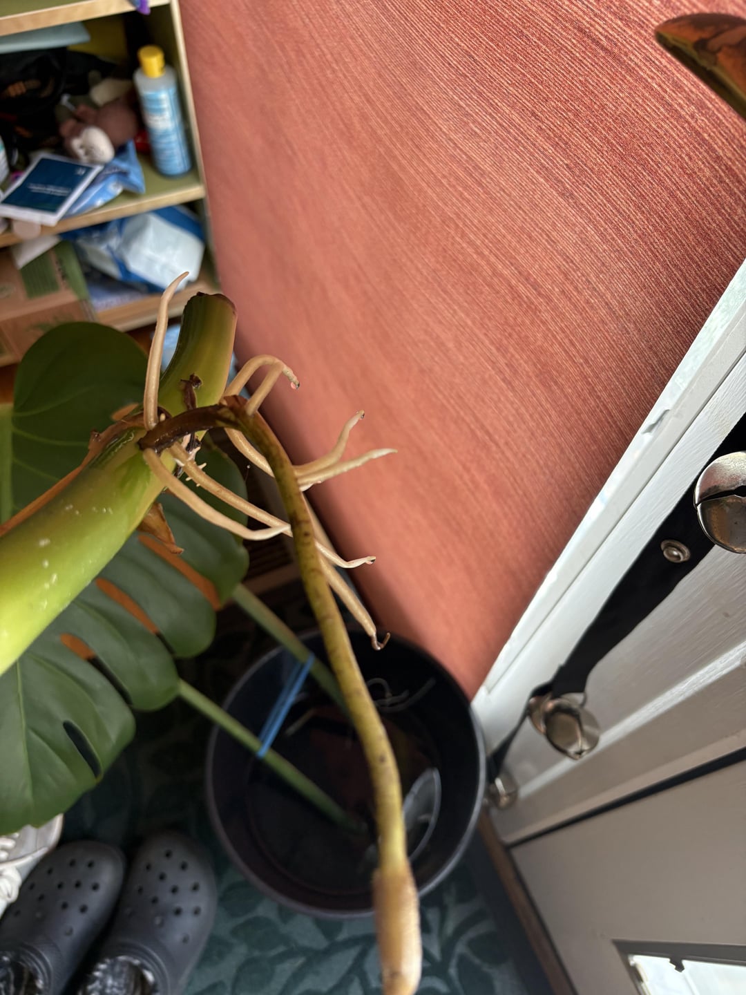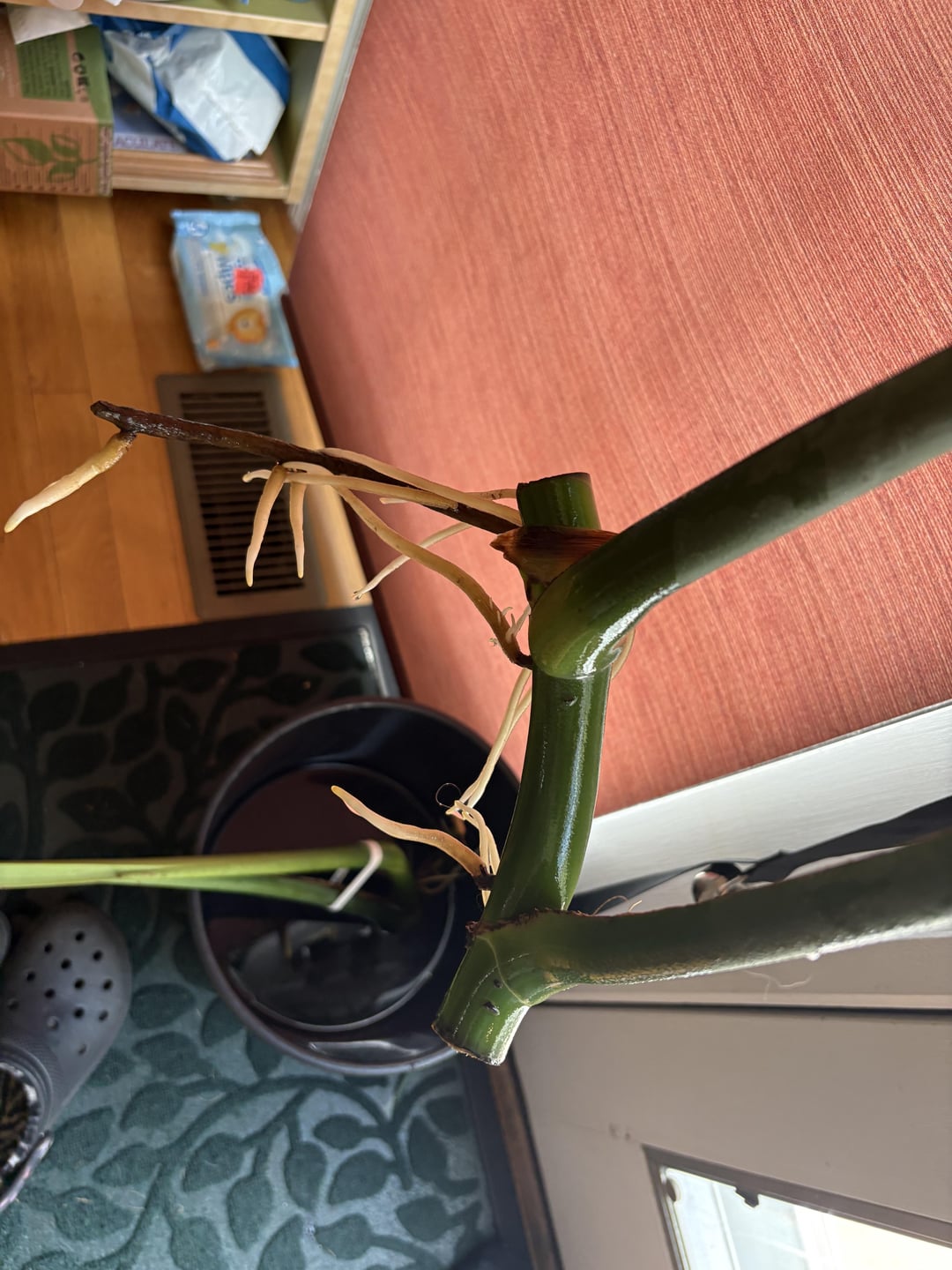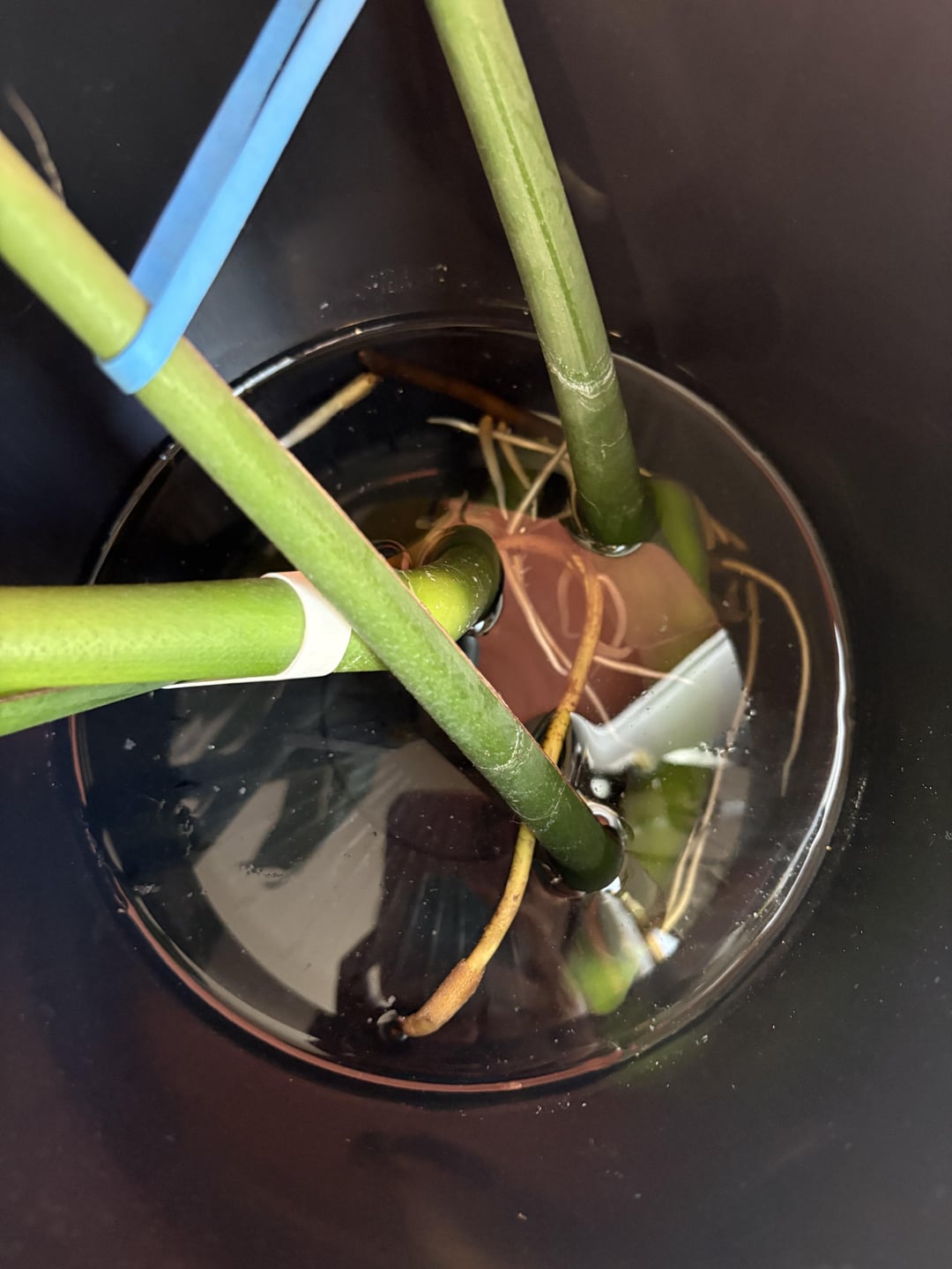 Hallo! Ich habe kürzlich zwei Monstera Deliciosa (ich habe geprüft und sie sind Deliciosa) mit jeweils zwei Blättern geschnitten, und ich habe keine Ahnung, wann ich sie stöbern sollte oder wie. Sollte ich sie beide zusammen oder getrennt zusammenbringen? Die mittleren beiden Bilder sind die Wurzeln der beiden verschiedenen Stecklinge, und das letzte Foto ist nur als Referenz darauf, wie es aussieht. Danke schön!!