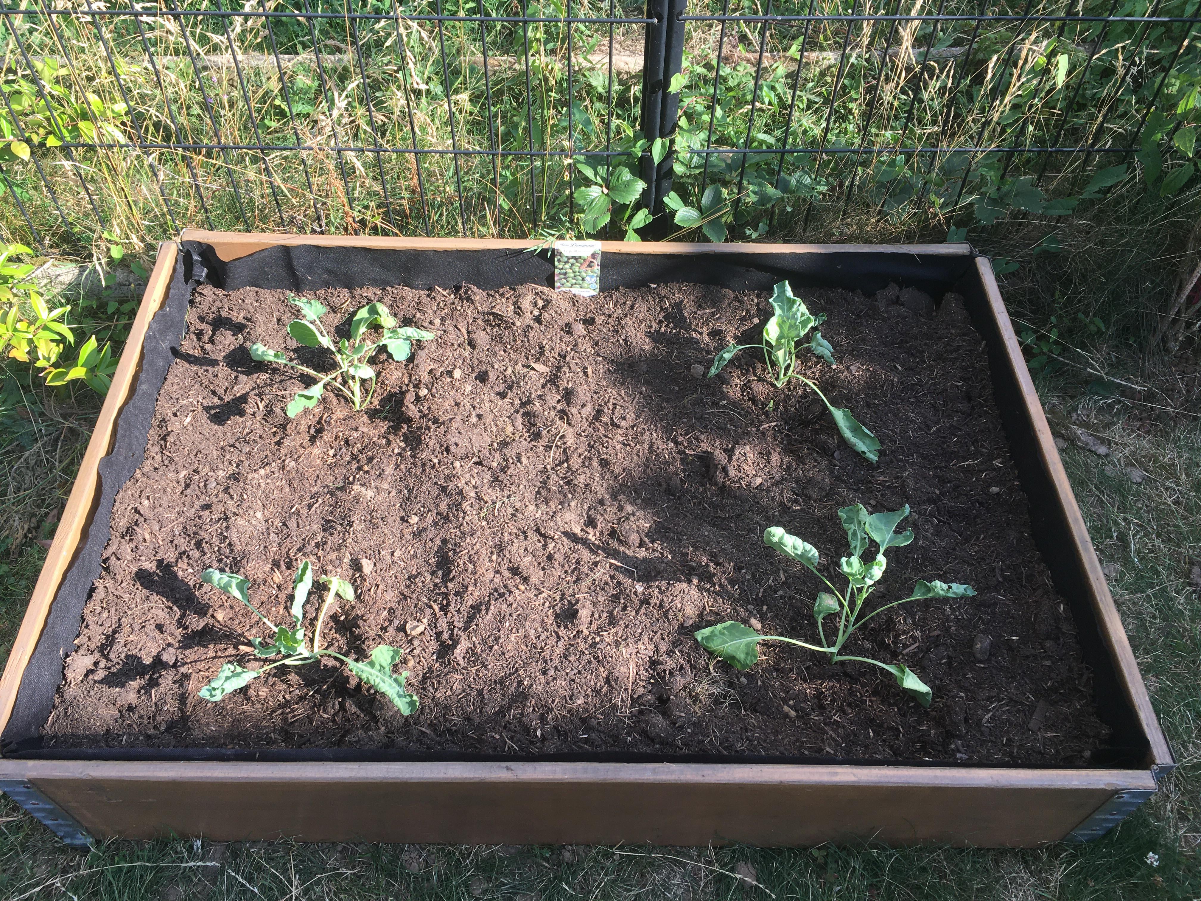 Ich installierte meine 4 Brüsseler Kohlpflanzen in meinem Gemüsegarten und respektierte alle 50 cm und 4 Pläne pro M2 ein Werk.
