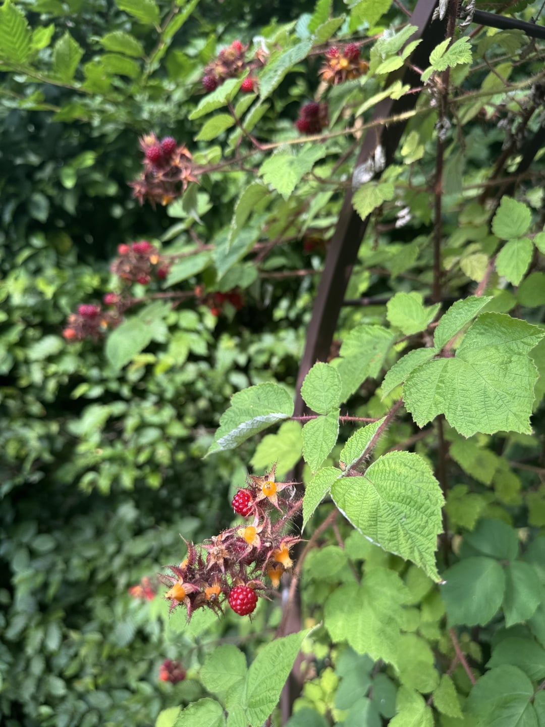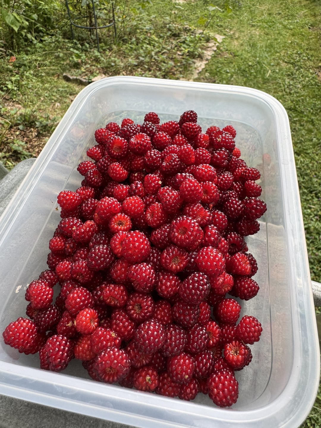Unser Ronce aus Japan (Rubis Phoeniculasius) bietet im Juli wunderschöne Ernte und ist auch sehr ästhetisch mit seinen hellgrünen Blättern und roten Zweigen. Eine Pflanze, die in bestimmten Staaten der USA als invasiv angesehen wird. Ich bin gespannt, ob Sie auch welche haben!