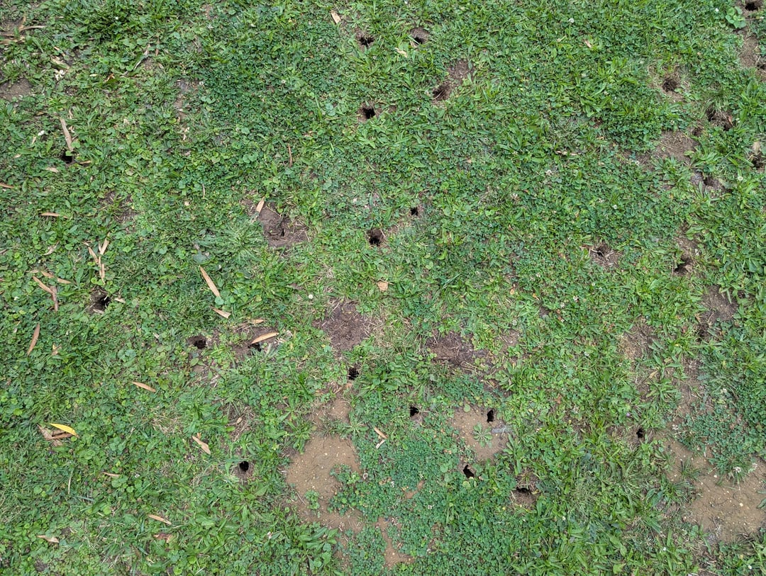 Hallo allerseits, ich bin schon seit ein paar Monaten Dutzende kleiner Löcher in einem Teil meines Gartens, wie Sie auf einem Foto sehen können. An diesem Ort befindet sich das Ausbreitungssystem meiner skeptischen Grube, so dass die Erde nass ist. Ich habe einige Nachforschungen angestellt und ich denke, es könnte die Taupier Ratten sein. Was denken Sie?