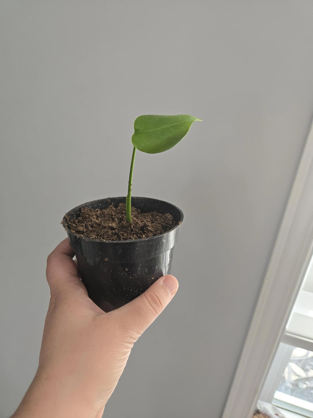 Ich dachte, es wäre ein Zombieblatt, da es keinen offensichtlichen Knoten hatte, aber anscheinend gab es gerade genug, um zu einer echten Pflanze zu wachsen! Es lohnt sich immer, es zu versuchen! Es ist jetzt ein bisschen traurig, weil ich es nach draußen platziert habe und es selbst bei Akklimatierung etwas zu viel Sonne hat, also drinnen zurück.