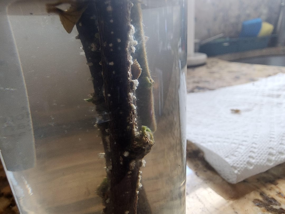 Ich habe diese Stecklinge vor ungefähr anderthalb Wochen genommen. Ich beschloss, das Wasser zu wechseln und die Stängel heute auszuspülen, weil sie ein wenig bewölkt aussahen, und bemerkte diese weißen Teile. Sind diese für ROS -Stecklinge normal oder sollte ich sie trennen?