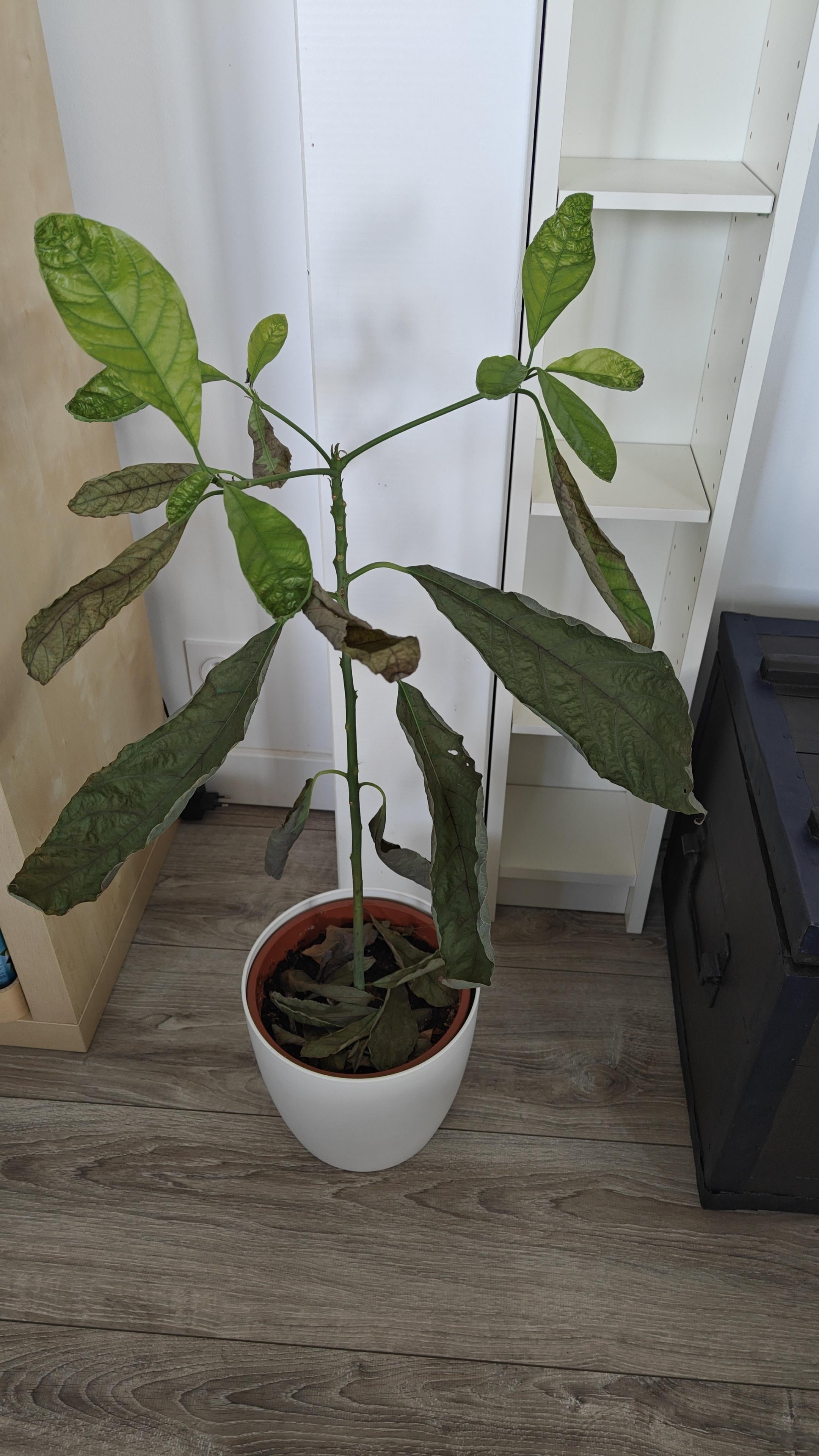 Seit 2-3 Wochen schießt meine Avocado das Gesicht, wobei die Wilt-Blätter und 1 Woche fallen.