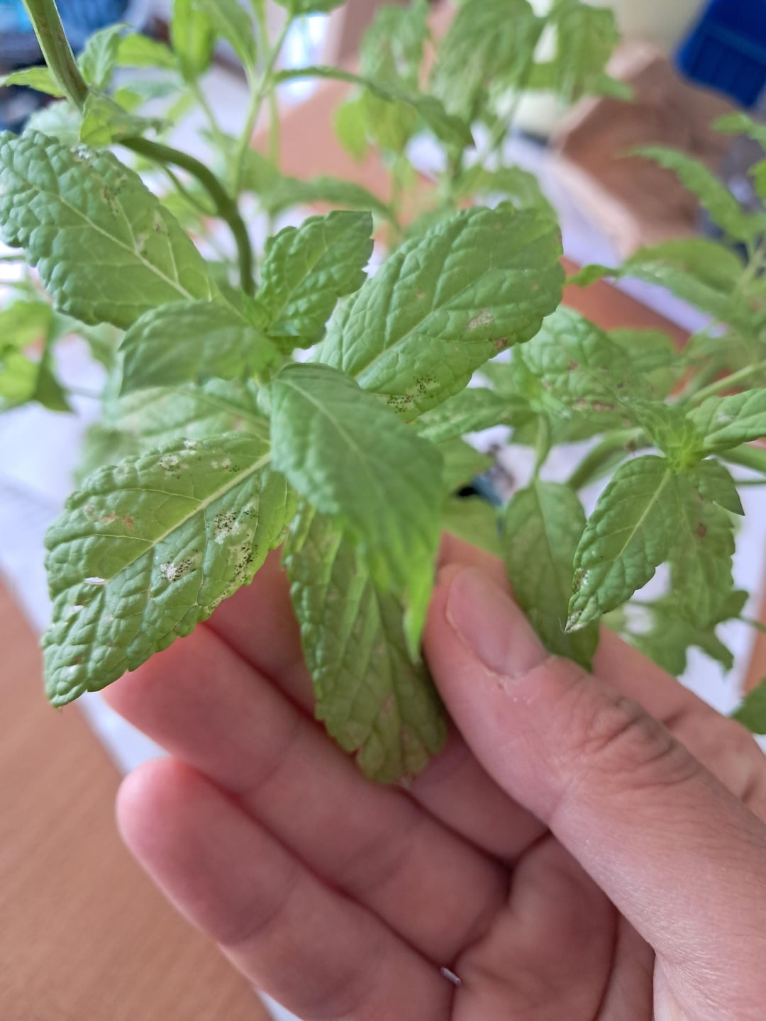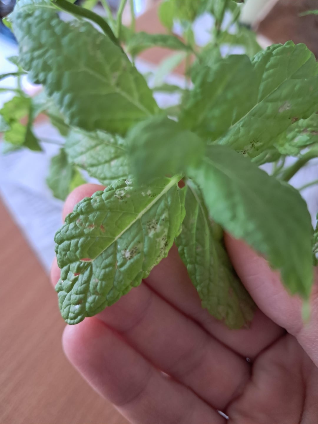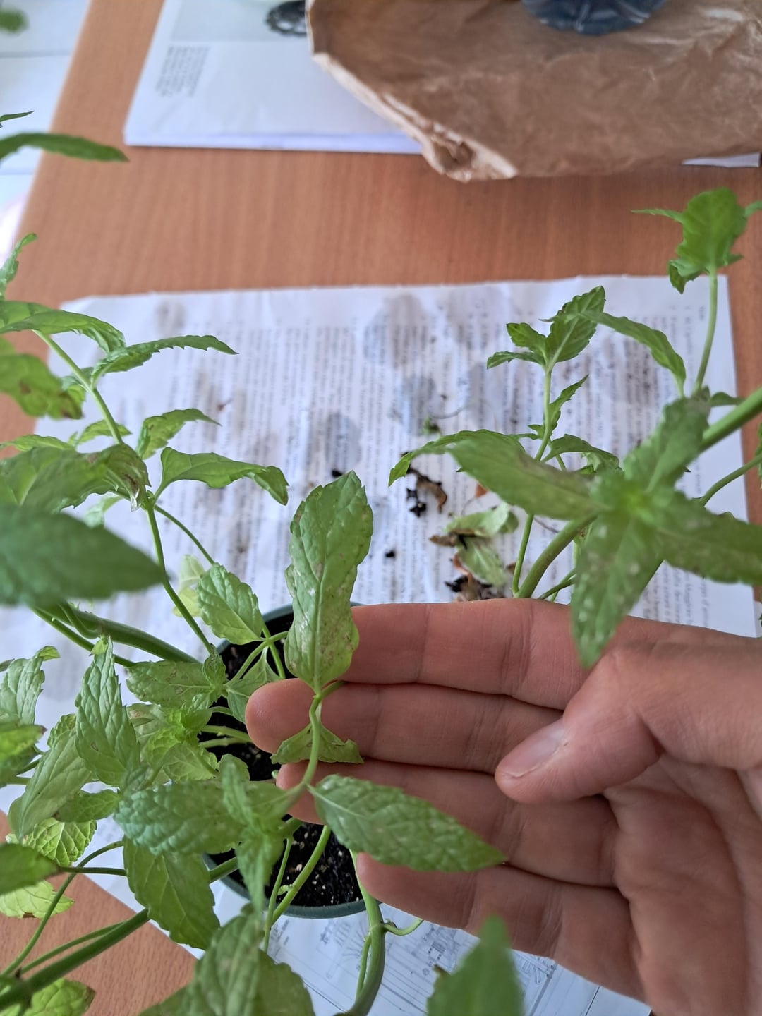 Ich kaufte ein organisches grünes Minzglas, das ich wiederholen muss. In der Zwischenzeit habe ich bewässert, indirektes Licht ausgesetzt und die Enden der Stiele geschnitten, die sich mehr entwickelten als die anderen (größere Blätter). Mir wurde gesagt, ich solle das gefallen.