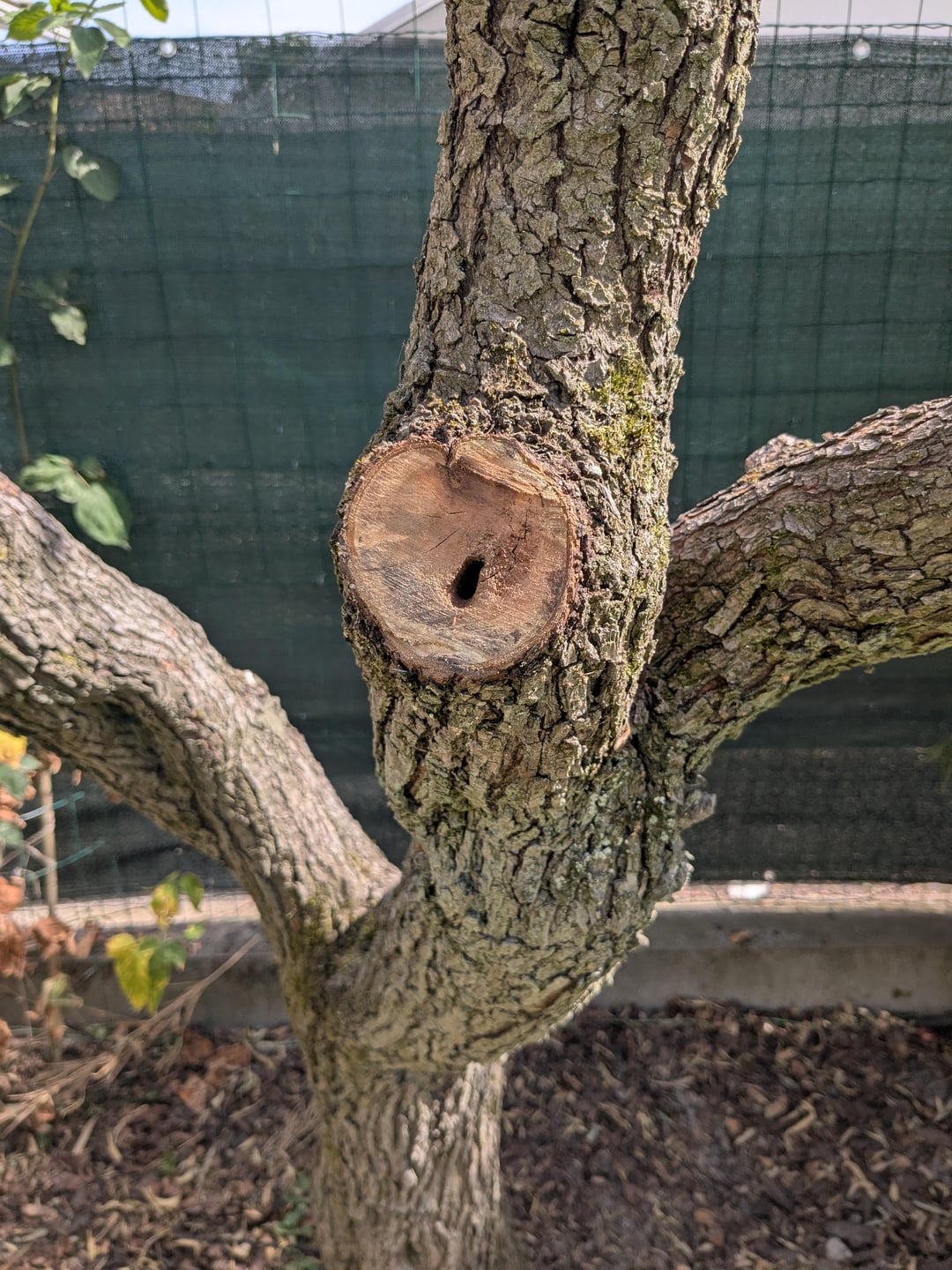 Ich habe einen Zweig meines Birnenbaums geschnitten und bin auf dieses Loch gestoßen. Ich kann ohne Schwierigkeiten eine Stange versenken. Ich habe viele Ameisen auf dem Baum. Plötzlich fragte ich mich, was ich damit anfangen soll. Nach dem, was ich weiß, essen die Ameisen totes Holz.
