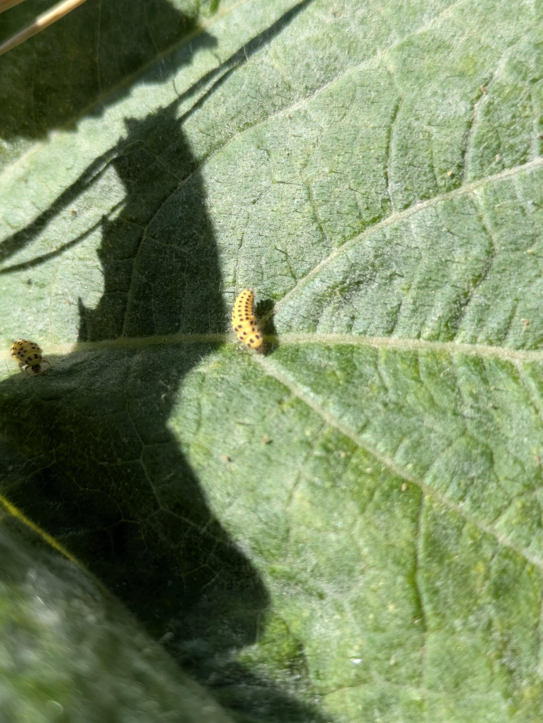 Überraschung hingegen heute Morgen entdecke ich Larven von "22 Punkt Ladybug" Auf dem Pastisson 🥰 Ich kannte diese charmanten Tiere nicht, aber ich lerne, dass sie sich von Pilzen ernähren 😃🤩