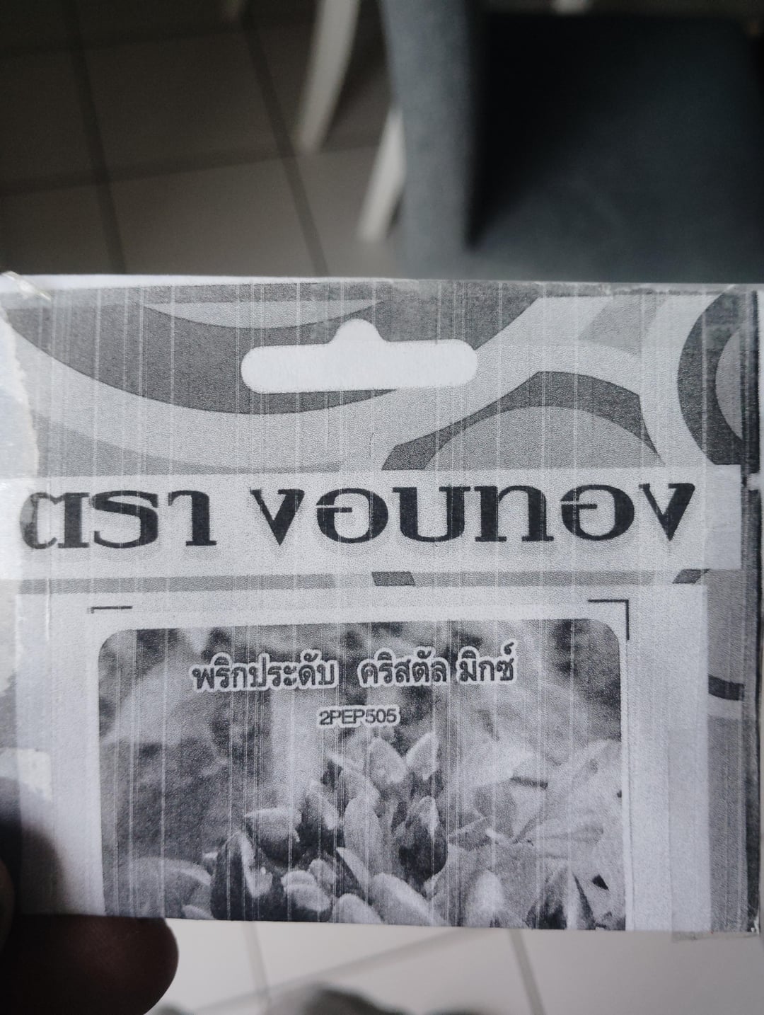 Ich erhielt Samen mehrerer Teller aus Thailand (thailändische Aubergine, zwei Arten von Chili). Plötzlich möchte ich in Bezug auf eine der Varianten von Chili wissen, welche Art von Chili es ist. Ich habe versucht, KI zu fragen, die mir zwei verschiedene Dinge sagen: "Kristallmisch -Schmuckpfeffer" und der andere "Weihnachtsverzierung Chili -Pfeffer". Kann jemand Thai lesen oder die Vielfalt kennen? Ornament = essbar?
