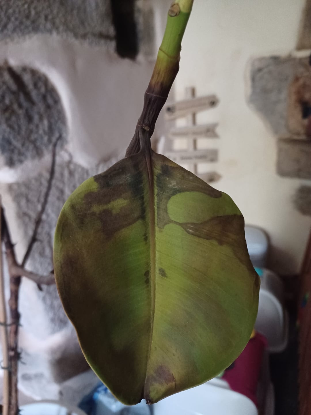 Guten Morgen ! Ich brauche Hilfe, um zu verstehen, was mit meinem Gummi passiert … Es war alles buschig, voller Blätter und in nur wenigen Tagen fand er sich so. Eine Vorstellung davon, was mit ihm passieren könnte? Es befindet sich in einem Raum, in dem die Sonne indirekt ist, aus der Luft heraus und bewässert, wenn die Erde trocken ist, um übermäßige Luftfeuchtigkeit zu vermeiden.