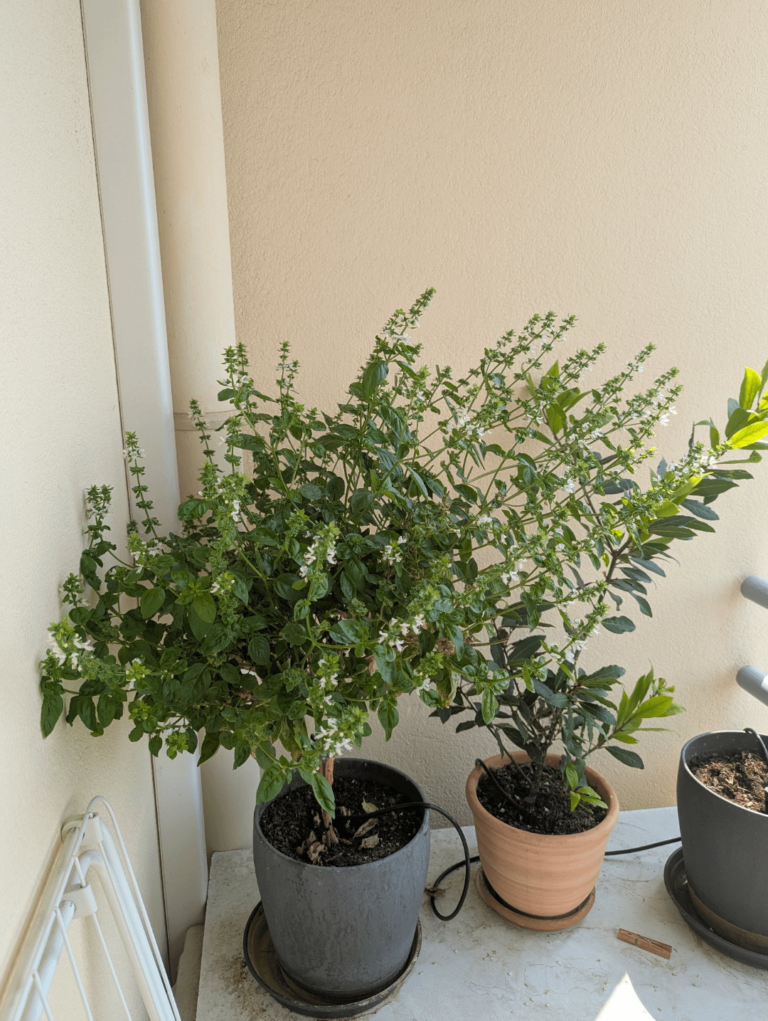Während ich im Urlaub war, war mein Basilikum in einem Topf ein wenig aufgeregt …