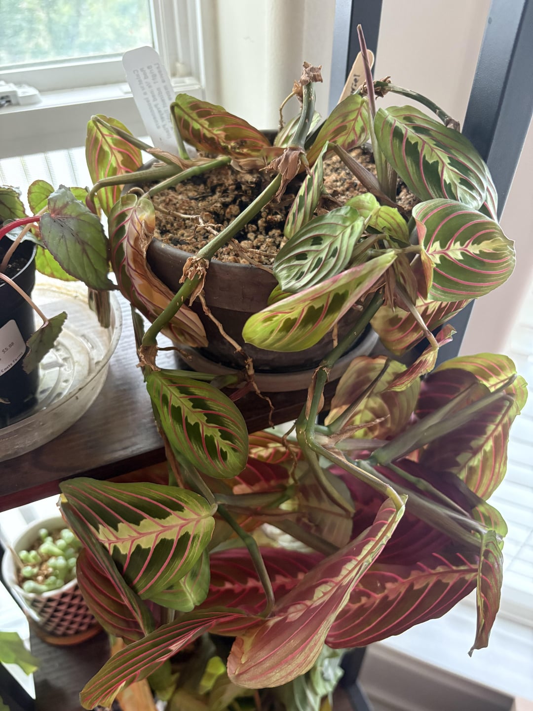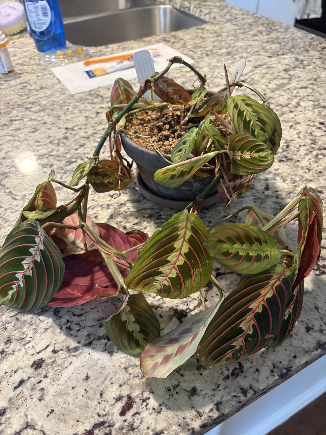 Vor einiger Zeit bemerkte ich, dass meine Gebetspflanze schrecklich aussah, aber ich habe schon seit Ewigkeiten etwas dagegen gemacht. Ich glaube nicht, dass etwas damit aus der typischen Aufregung von Maranta nicht auszusetzen ist. Allerdings – und korrigieren Sie mich, wenn ich falsch liege – werden Präkpflanzen als „Ausstrahler“ von Art, oder? Angenommen, die Tatsache, dass ich es überhaupt nicht beschnitten habe, hat es wahrscheinlich zu seiner gegenwärtigen „leggischen Ness“ geführt.
